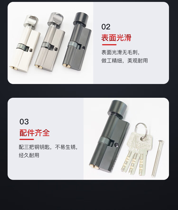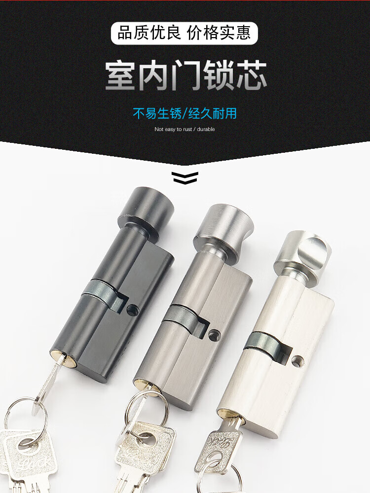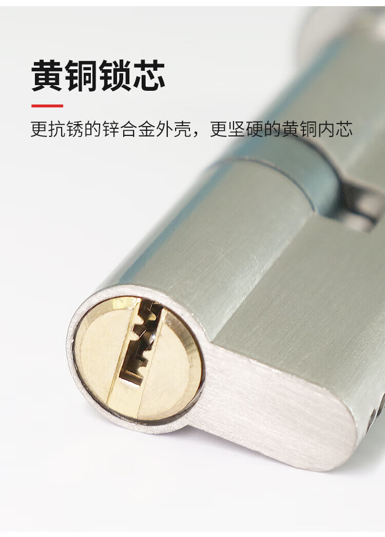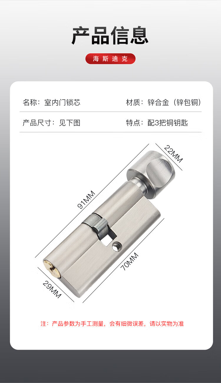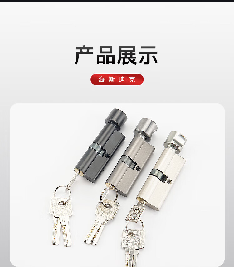 海斯迪克 房门锁芯 铜芯铜钥匙 HKT-68 灰色 1个