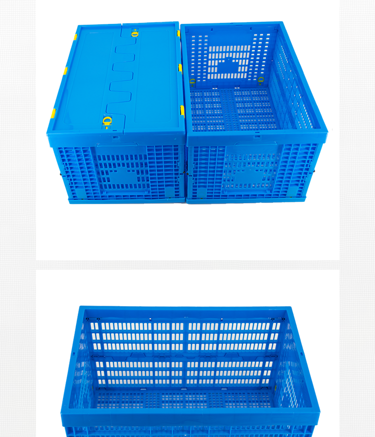 冰禹 塑料折叠周转筐 BY-3038 HDPE 蓝色 无盖 600*400*360mm 1个