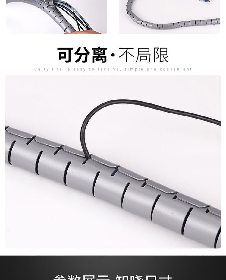冰禹 电线理线管 BY-7554 PE 黑色 30mm 多拍不截断 1米