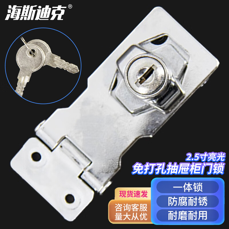 海斯迪克 免打孔锁 抽屉衣柜锁柜门锁 HKDP-279 不锈钢 2.5寸亮光 1个