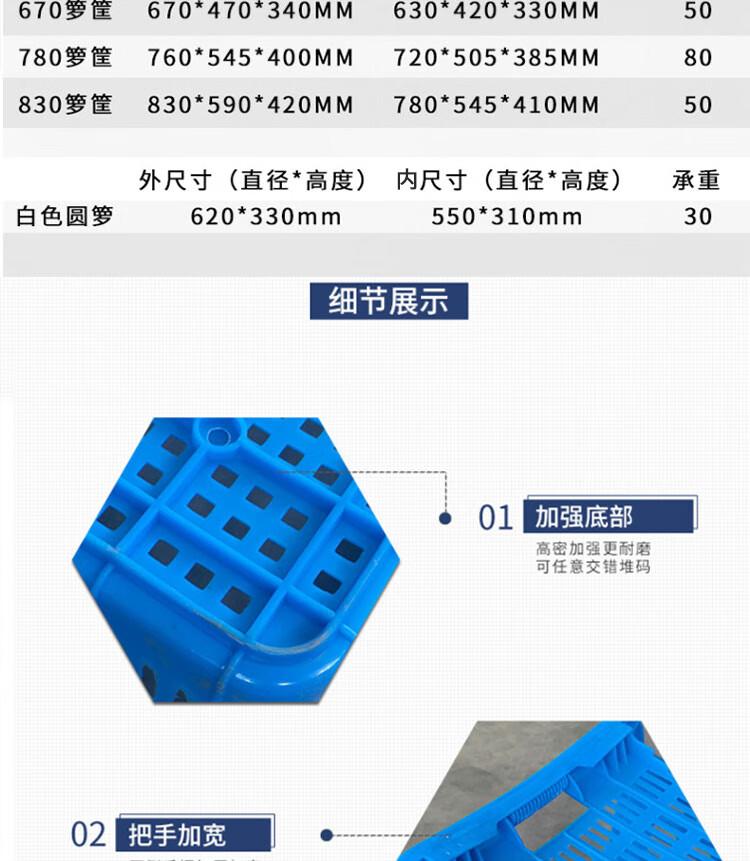 冰禹 塑料周转箩筐 BY-7086 HDPE 蓝色 580箩 585*400*305mm 1个
