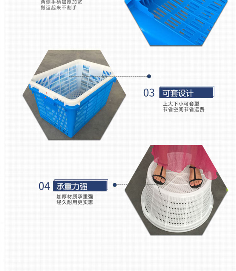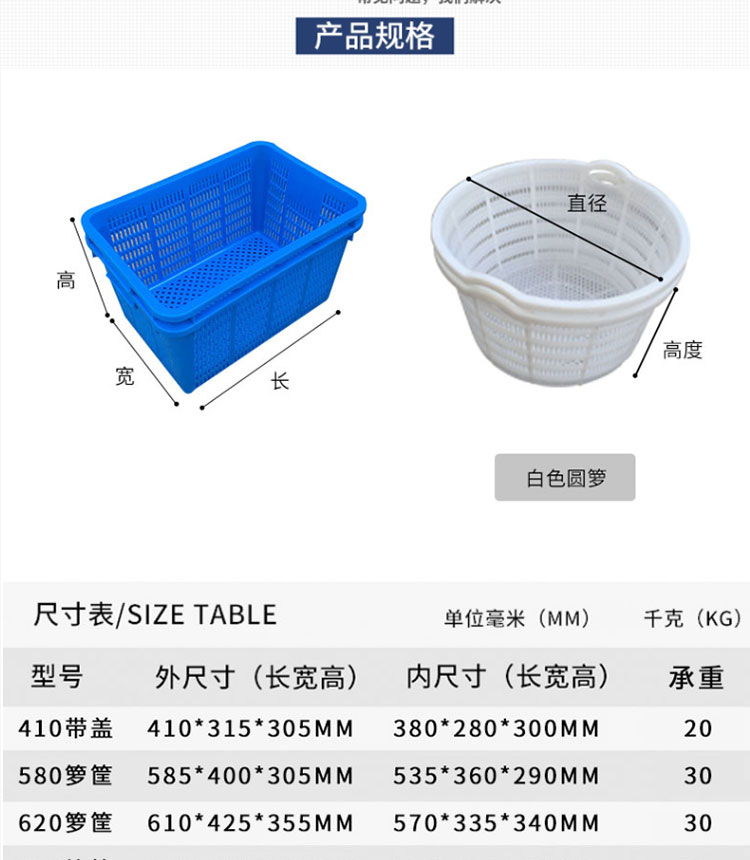 冰禹 塑料周转箩筐 BY-7086 HDPE 白色 小圆箩 620*330mm 1个