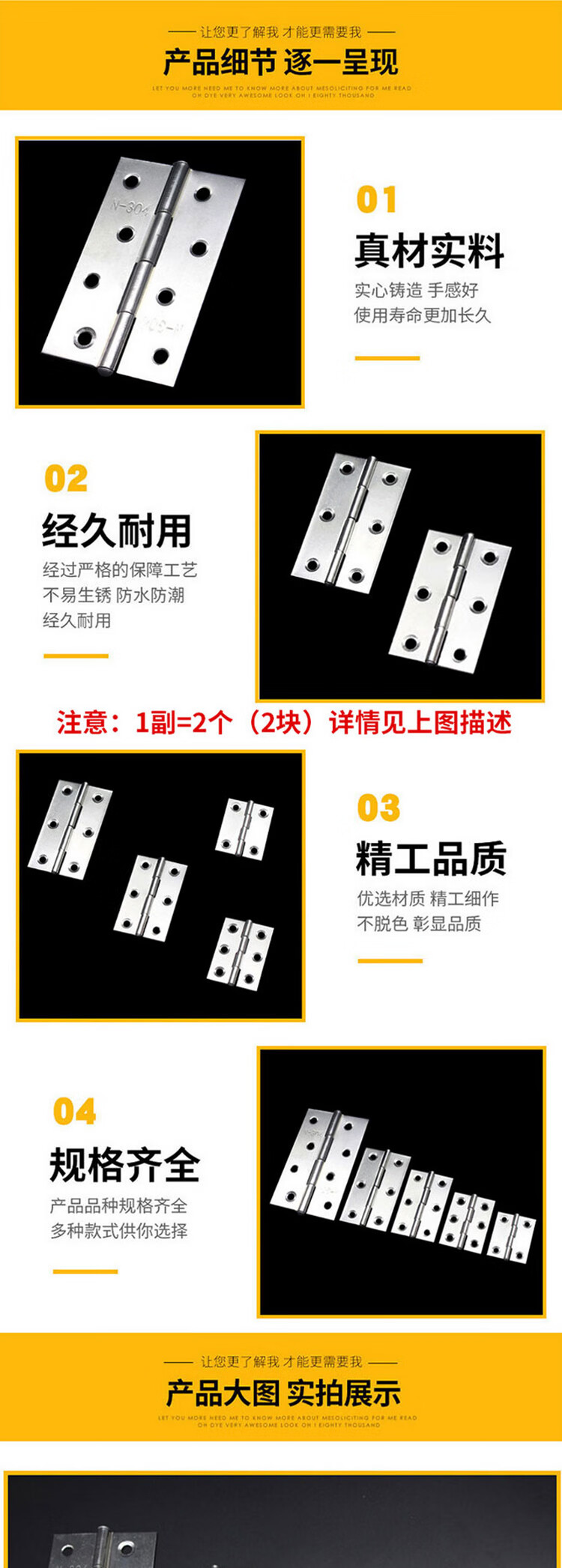 海斯迪克 普通平开合页 HKDP-247 不锈钢 2寸 20个 1包