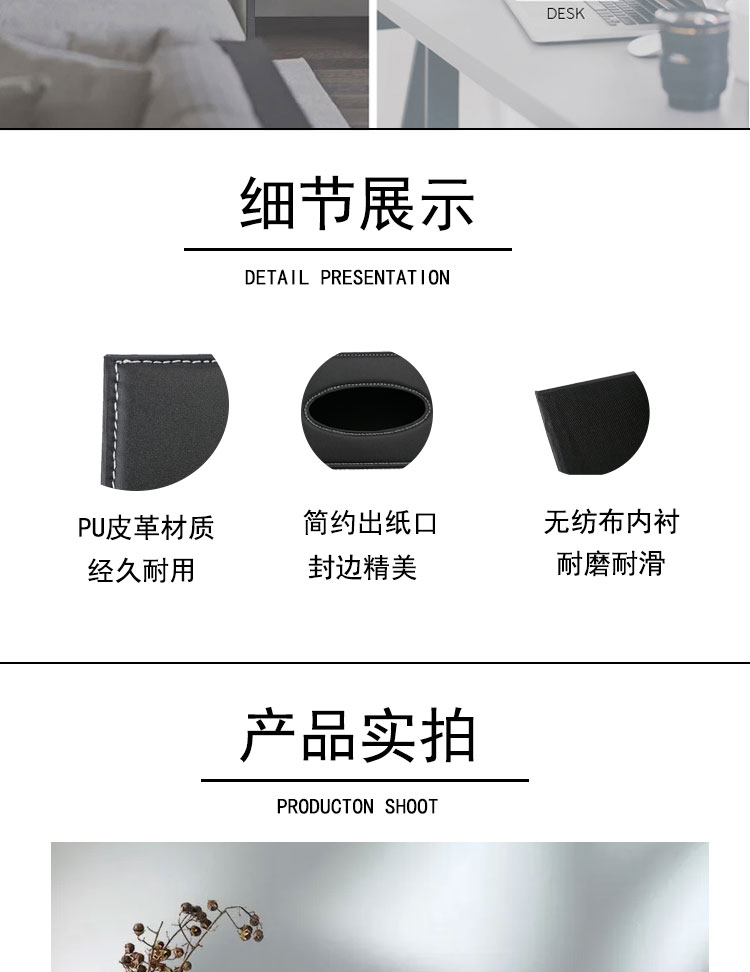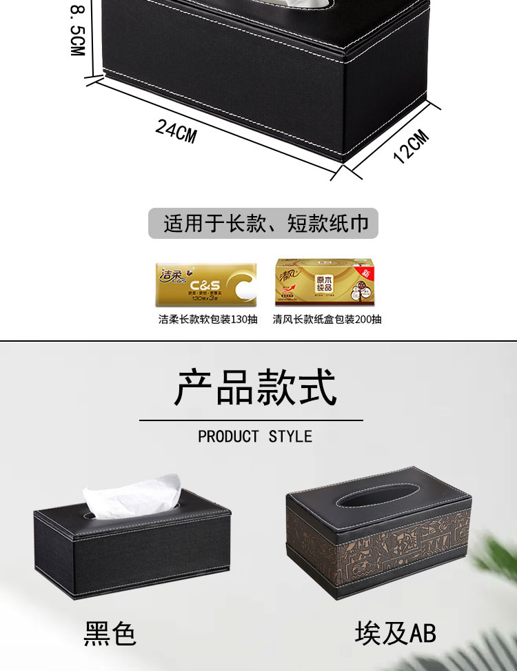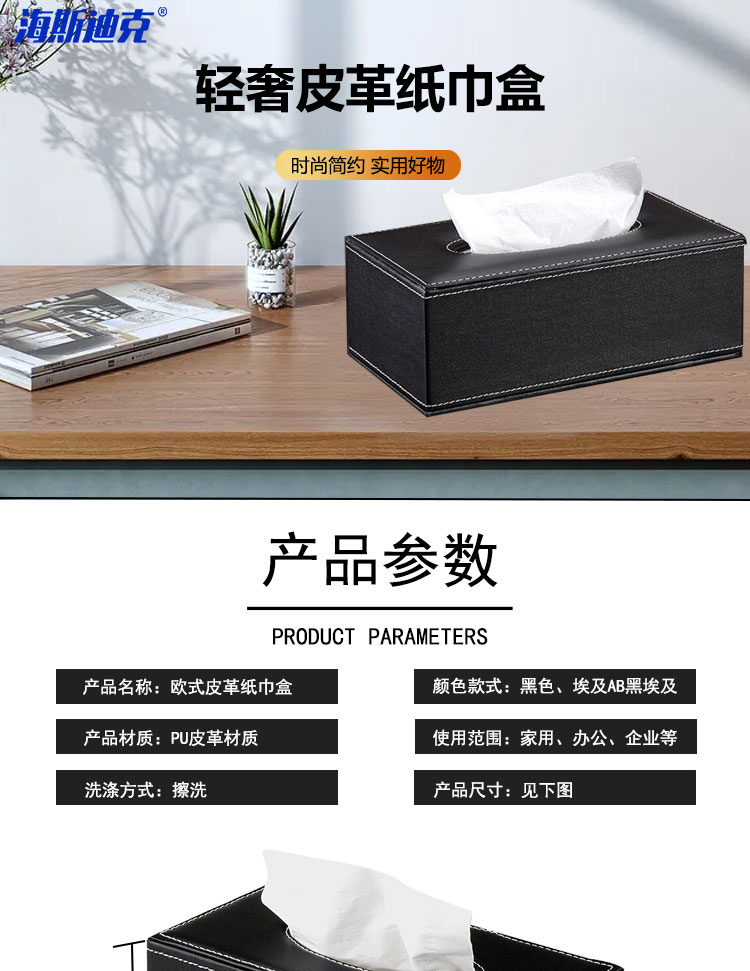 海斯迪克 欧式皮革纸巾盒 HKxy-32 黑色 24*12*8.5cm 1个
