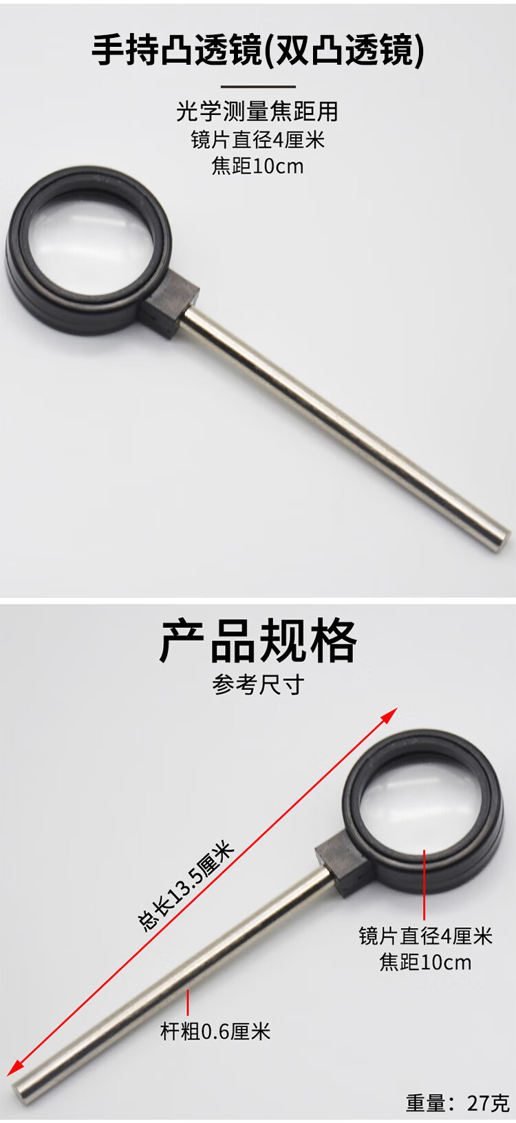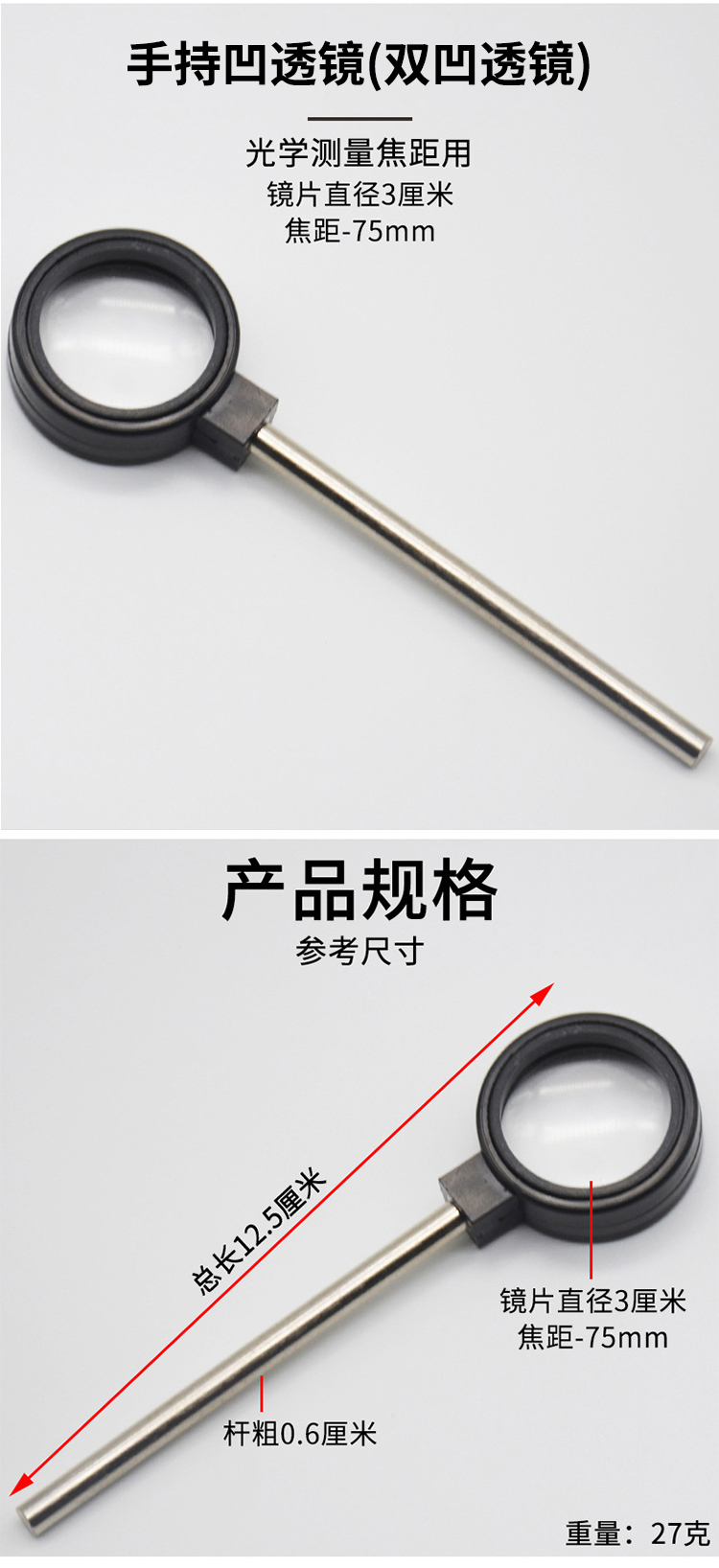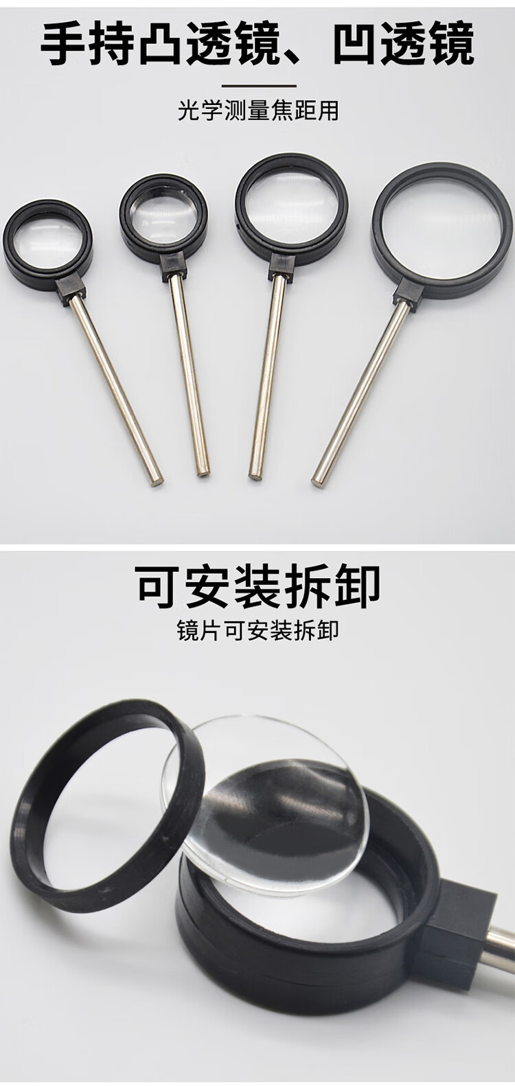冰禹 实验室手持凹透镜 BY-5018 凸透镜 3cm 1个