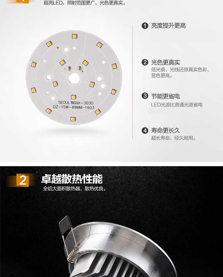 冰禹 LED射灯 BY-696 铝材 嵌入式 象牙白 3000K暖光 3w 开孔6.5-7.5cm 1个