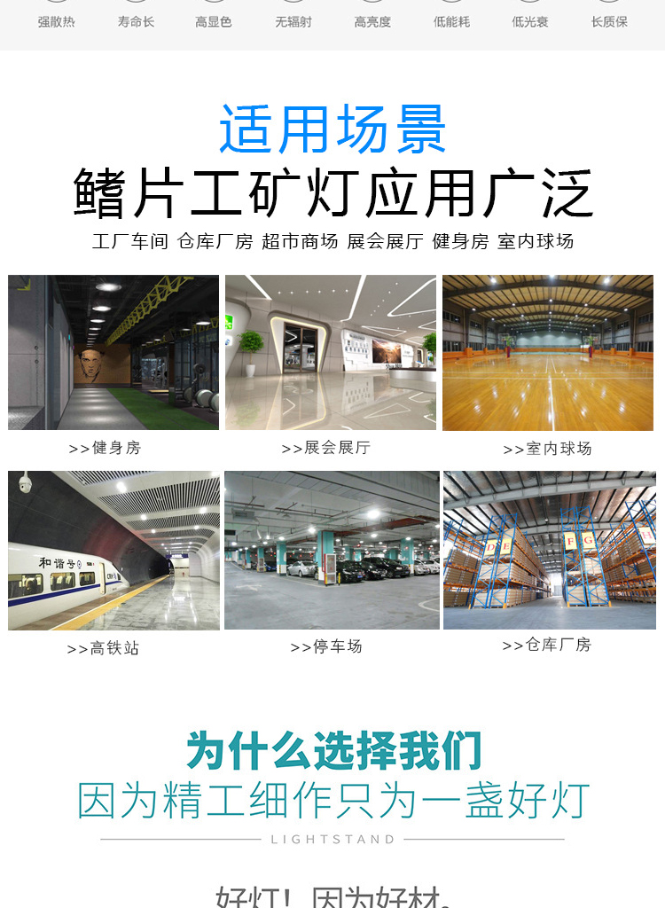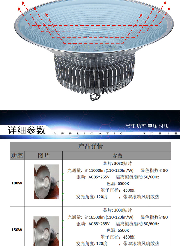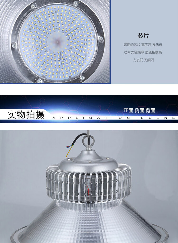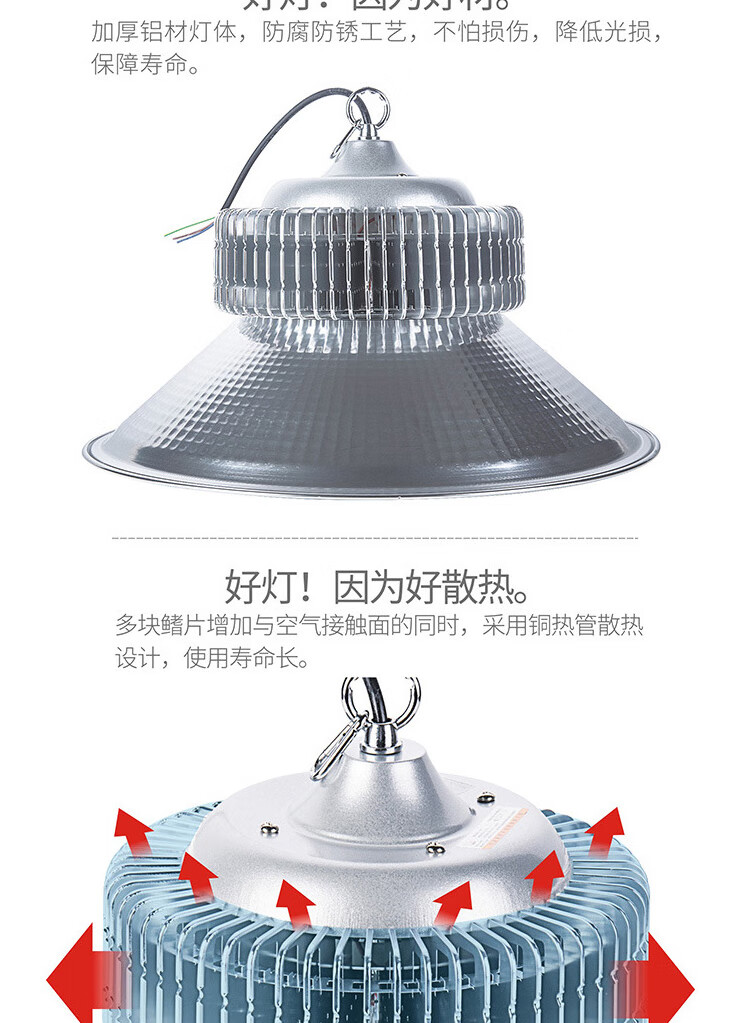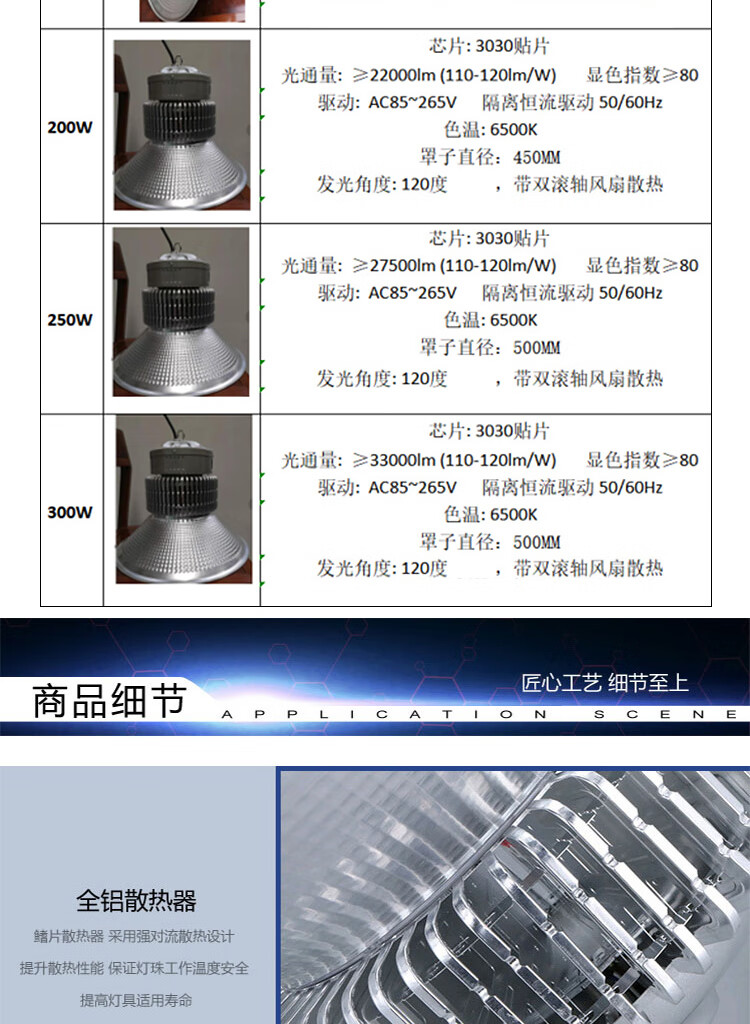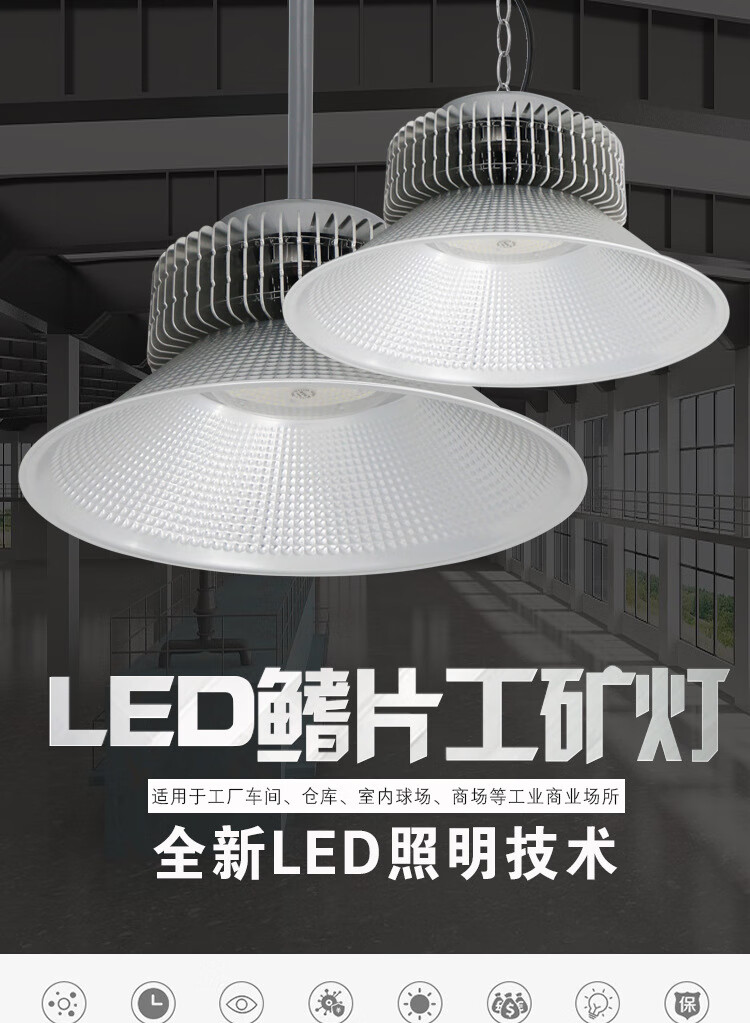 冰禹 LED工矿灯 BY-3068 铝材 6500K白光 120度 300W 吊链款 1个