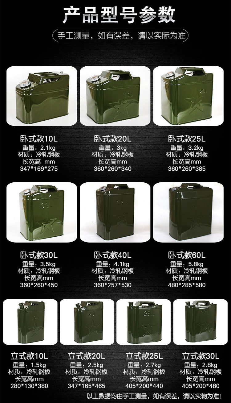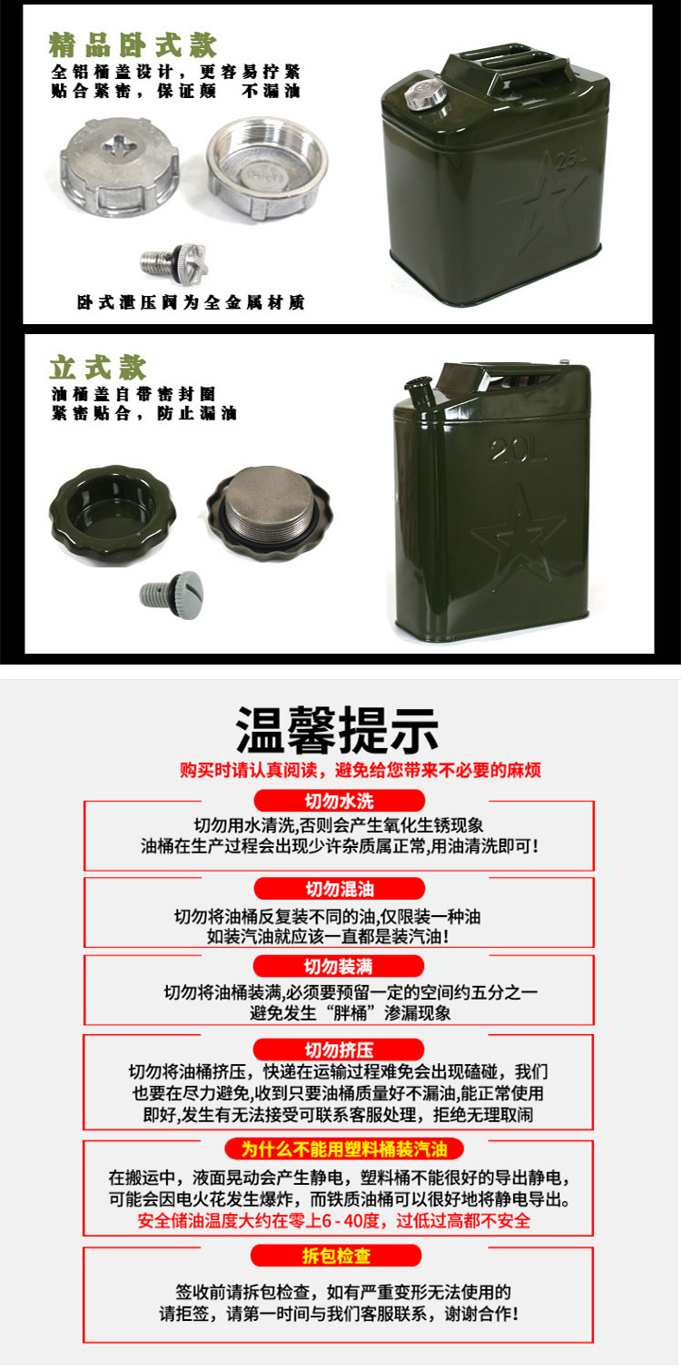 冰禹 汽油桶 BY-3058 冷轧钢板 军绿色 立式 20L 1个