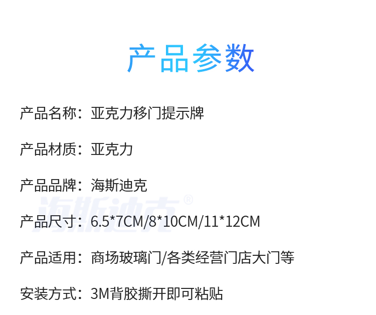 海斯迪克 玻璃门移门提示门牌 HKL-1119 亚克力 移 带背胶11*12cm 1个