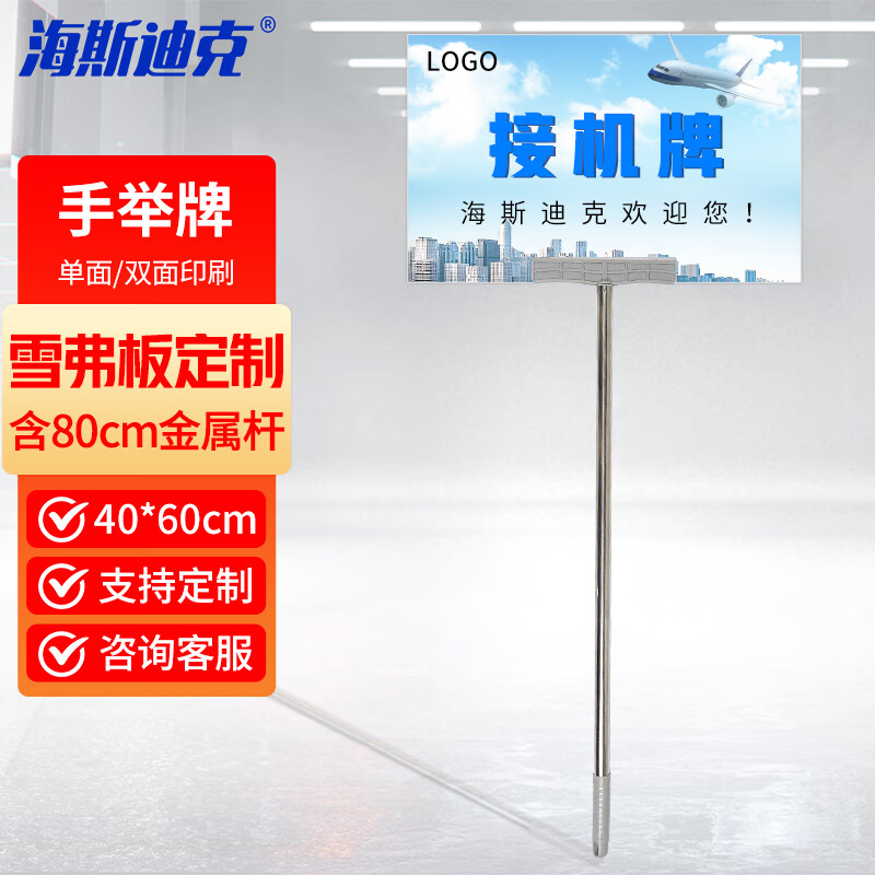 海斯迪克 迎宾牌手举牌 接机牌双面旅游牌引导牌班级牌 HKCX-124 雪弗板定制 40*60cm(含80cm金属杆) 1个