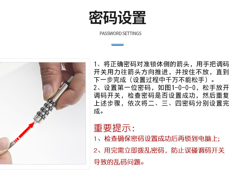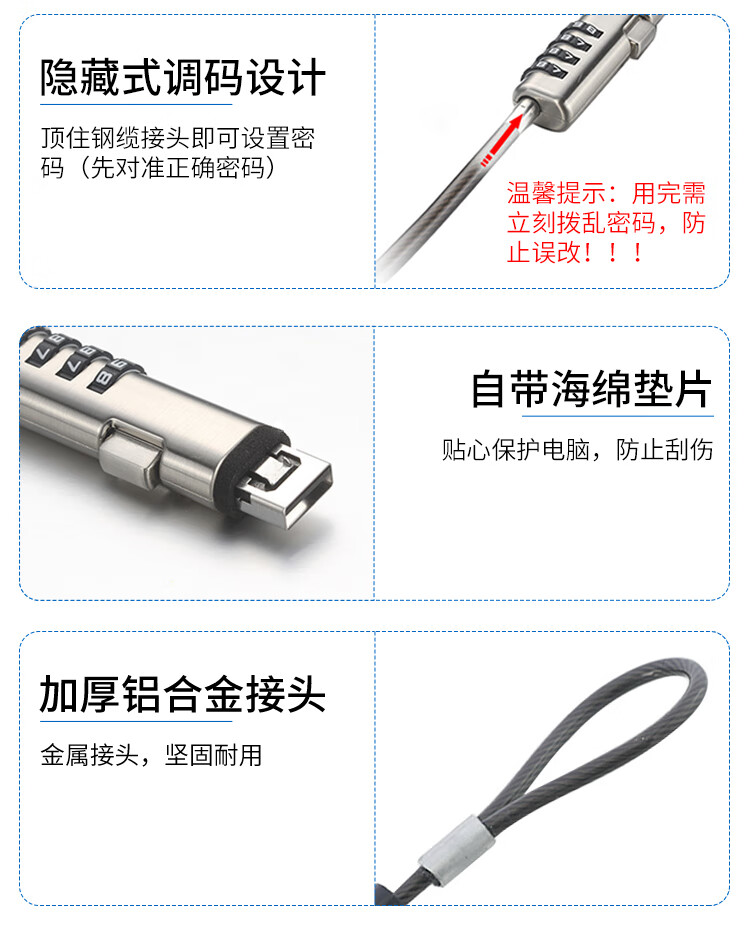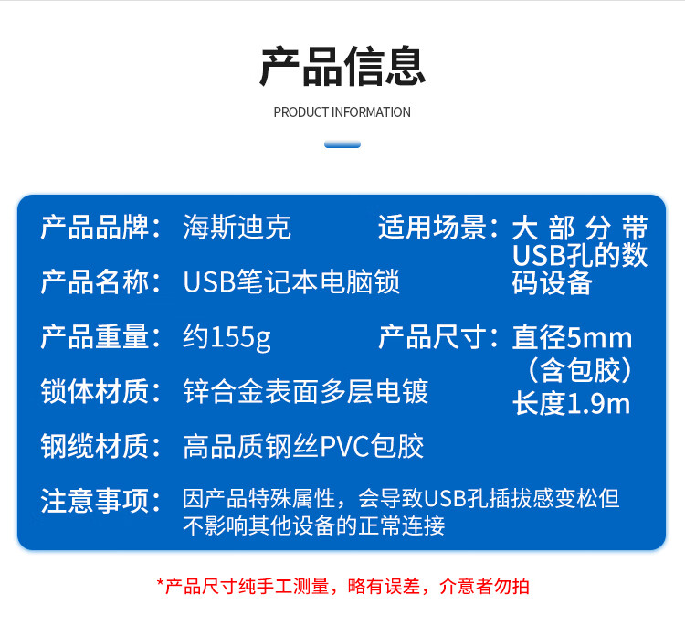 海斯迪克 防盗锁 HKT-183 银色1.9m 1个