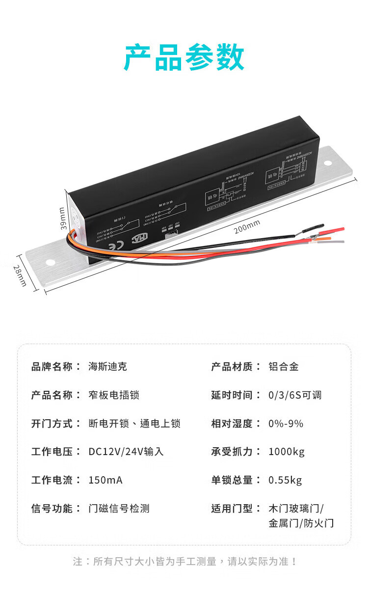 海斯迪克 窄版电插锁 HKQL-115 2线 1个