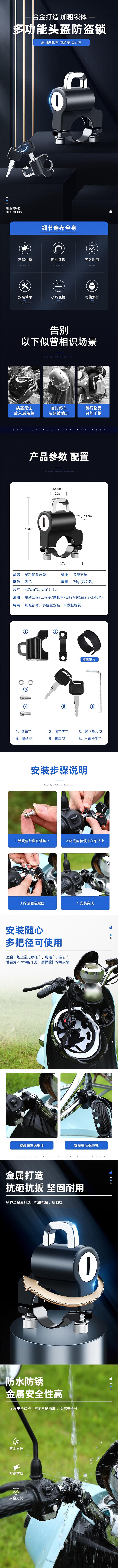 海斯迪克 头盔防盗锁 HKT-176 黑色 1个