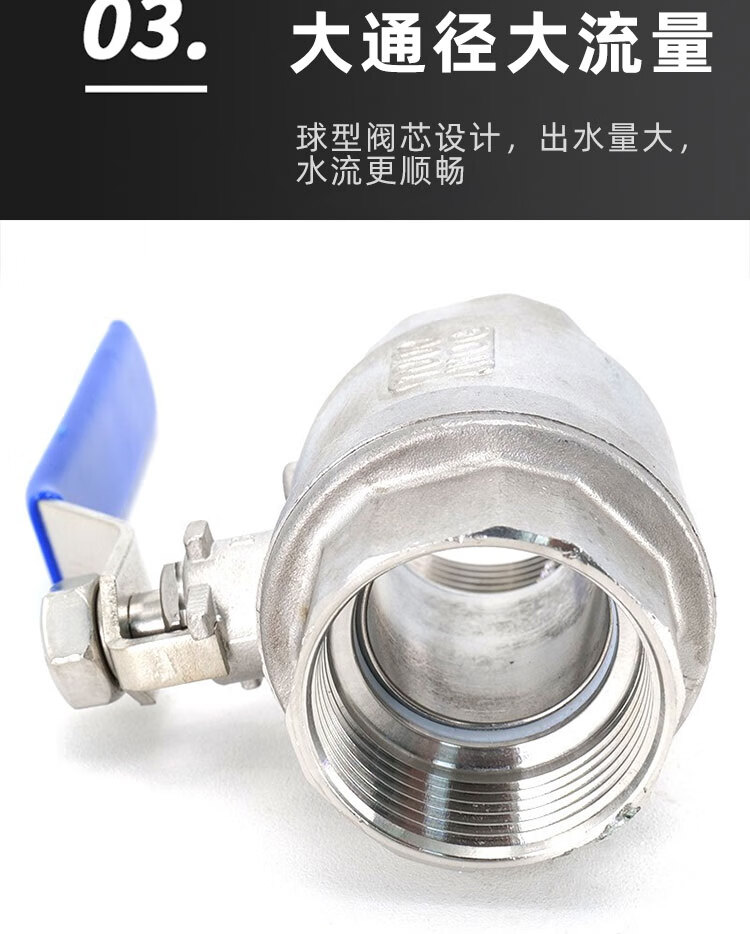 冰禹 二片式球阀 BY-347 304不锈钢 内螺纹 1.6MPa 轻型 DN50 2寸 1个