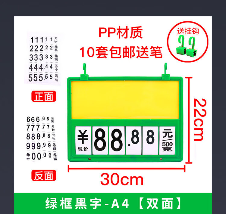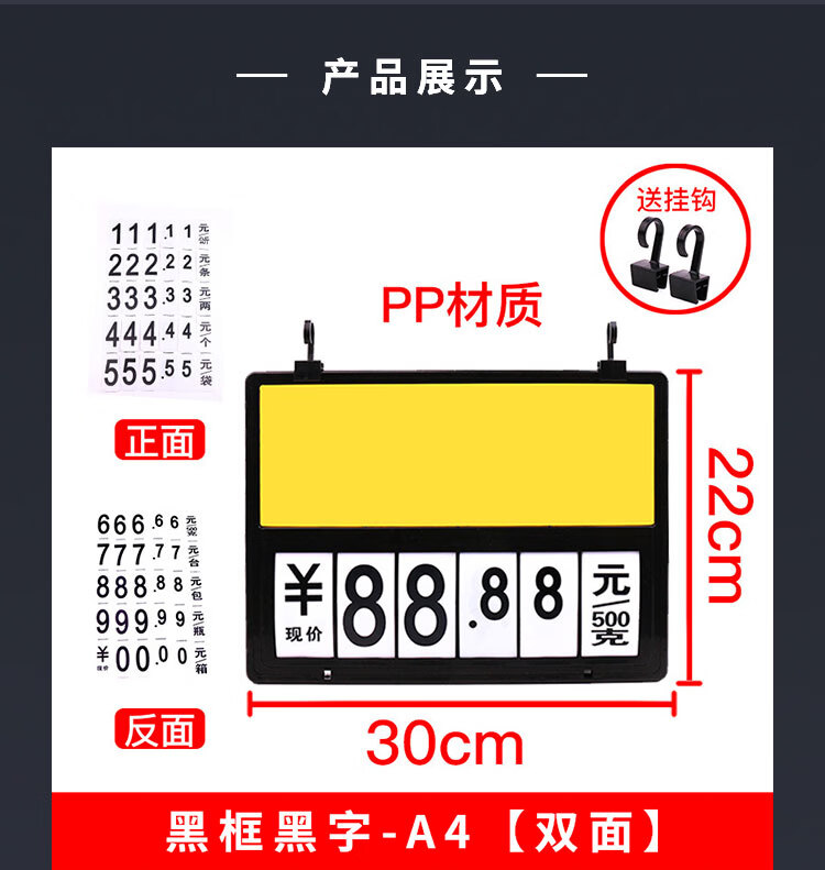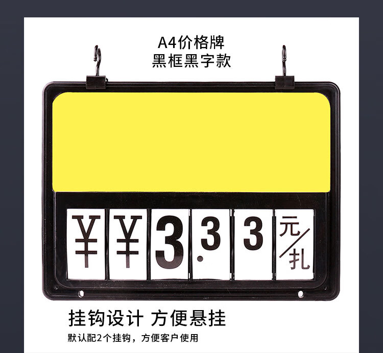 海斯迪克 双面挂式价格牌 HKT-37 黑框黑字-A4【送挂钩】 30*22cm 塑料 1套