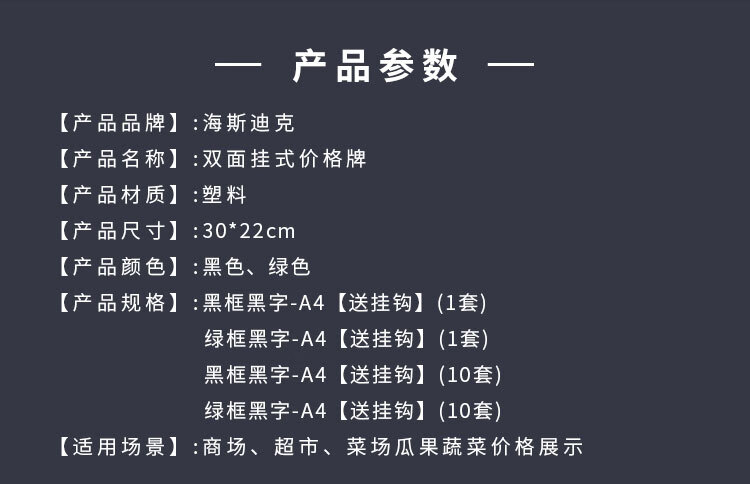 • 商品名称:海斯迪克 双面挂式价格牌
