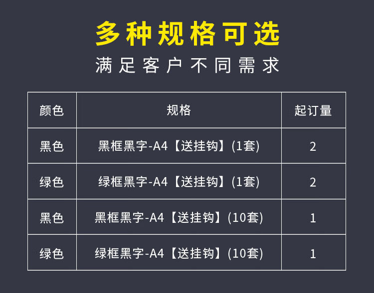 • 款式黑框黑字-A4【送挂钩】