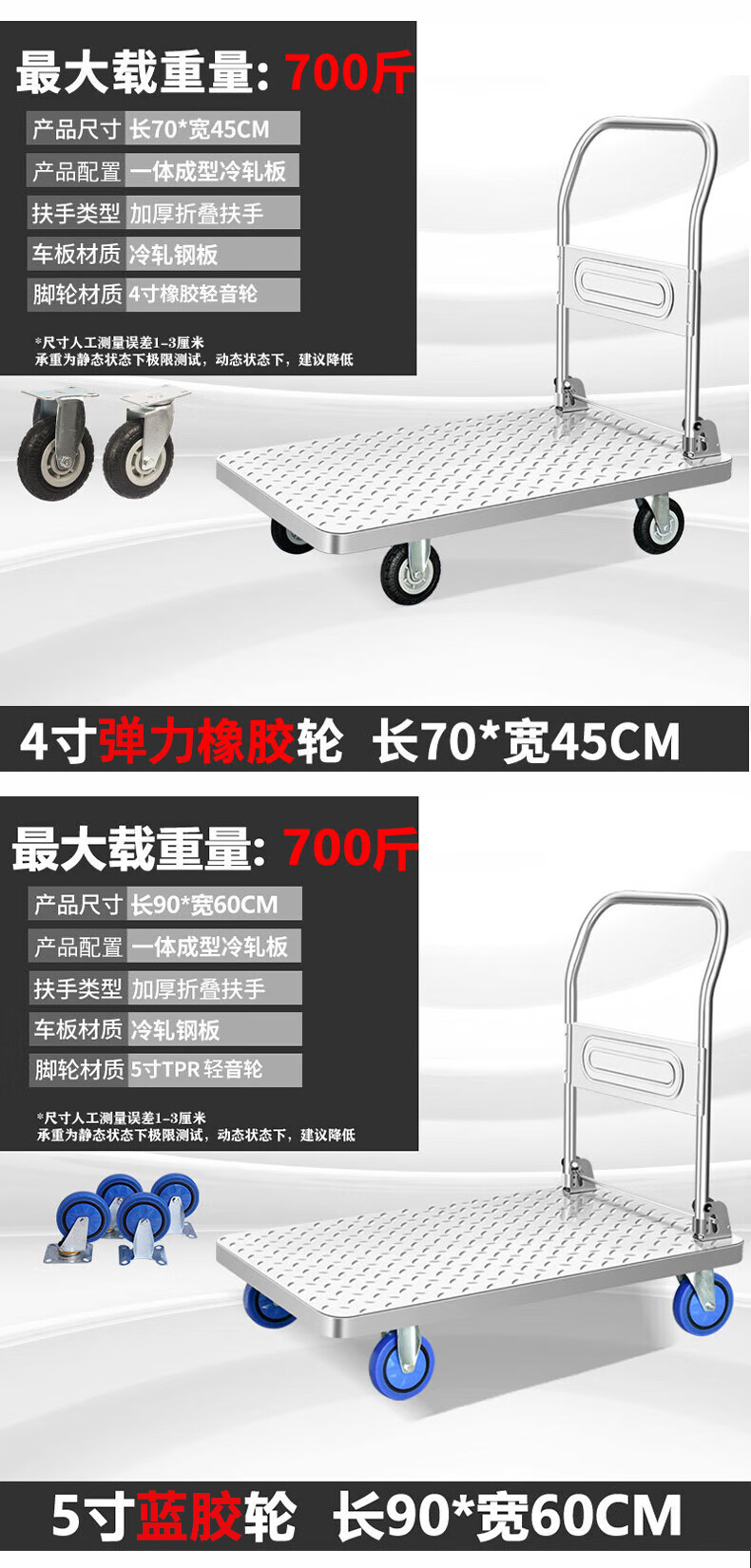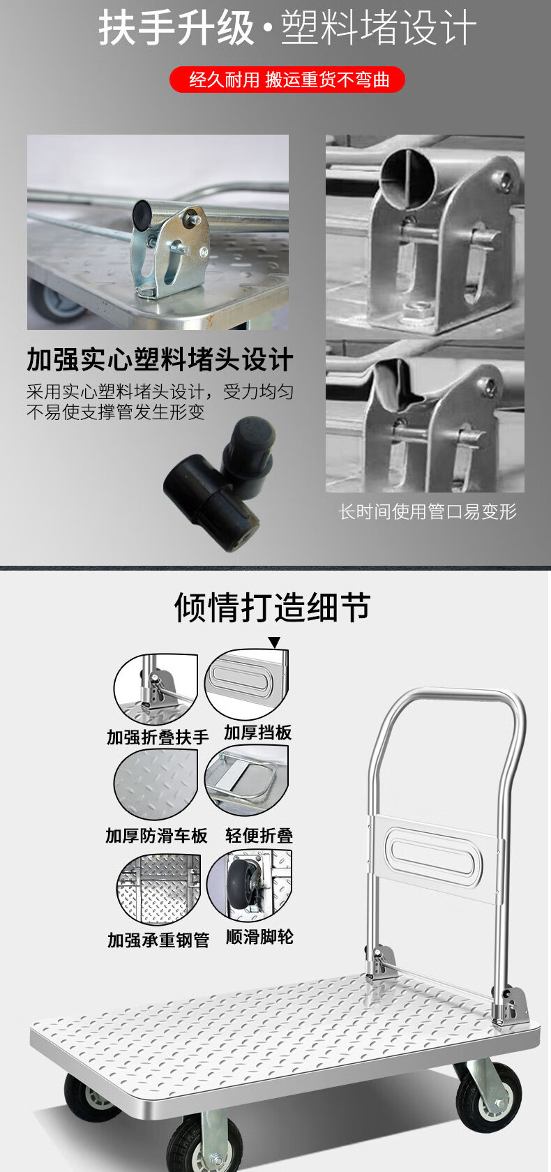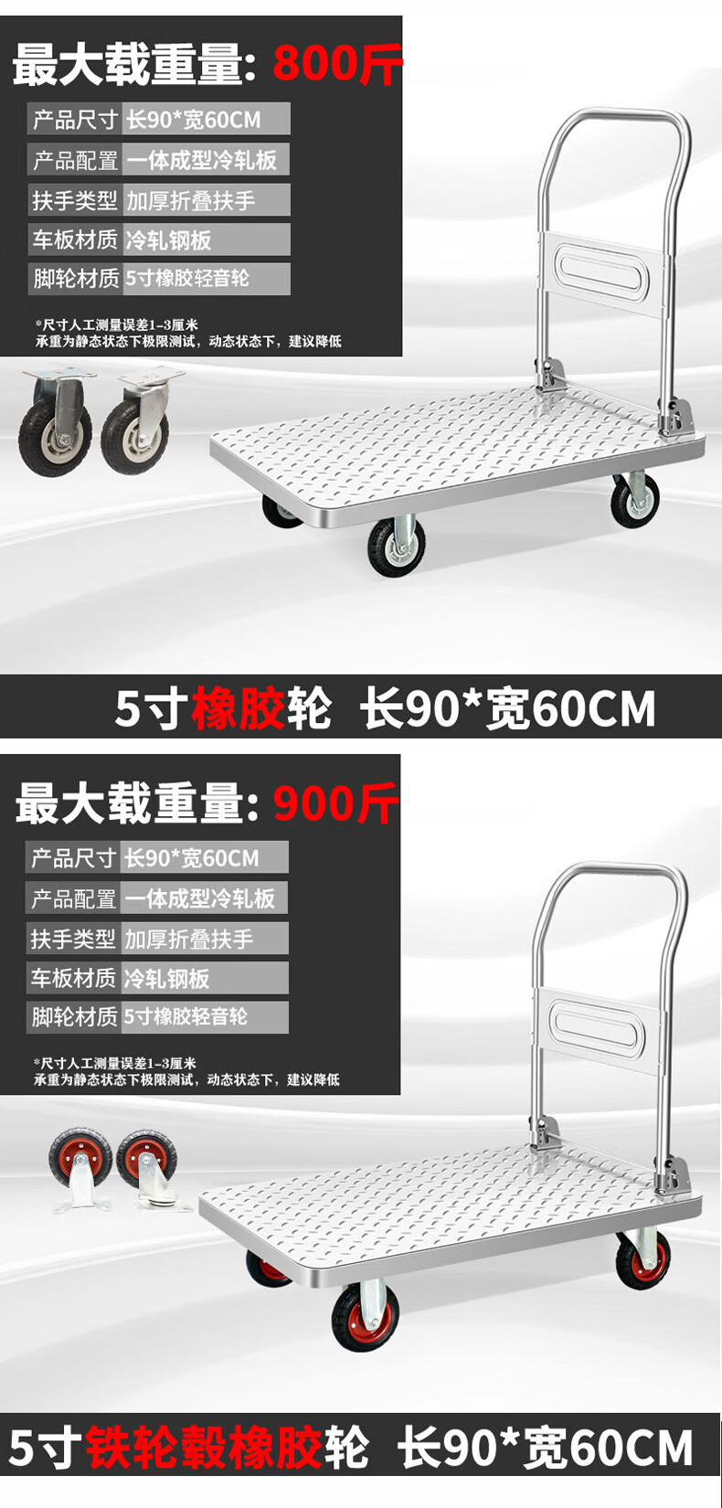 冰禹 平板手推车 BYA-437 钢板 铁轮毂橡胶轮 5寸 90*60cm 1辆