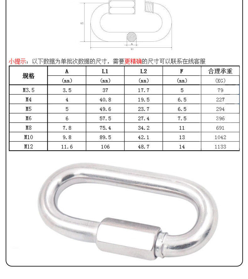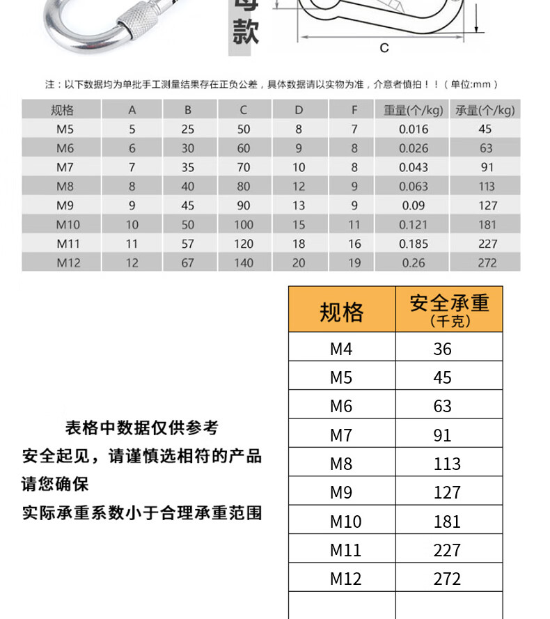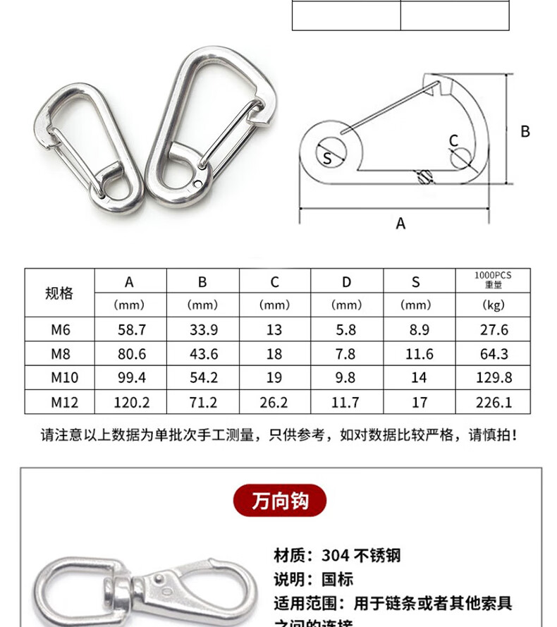 冰禹 弹簧扣 BK-31 304不锈钢 本色 国标 M12标准型 1个