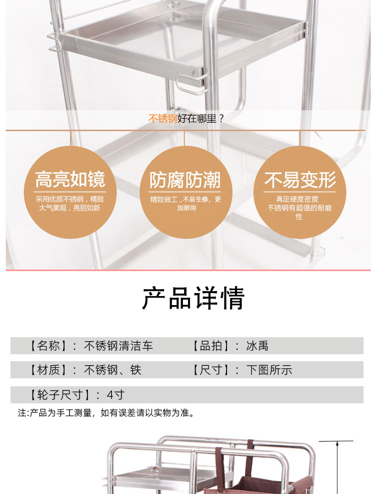 冰禹 保洁车物业清洁车 BYyc-277 不锈钢 多功能清洁车 1个