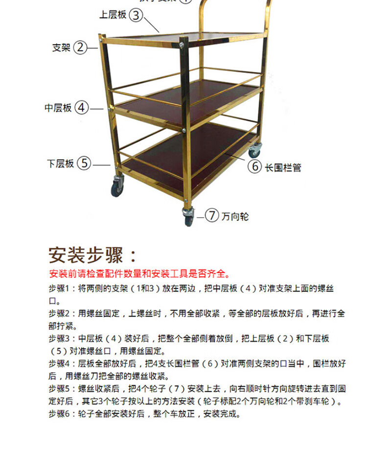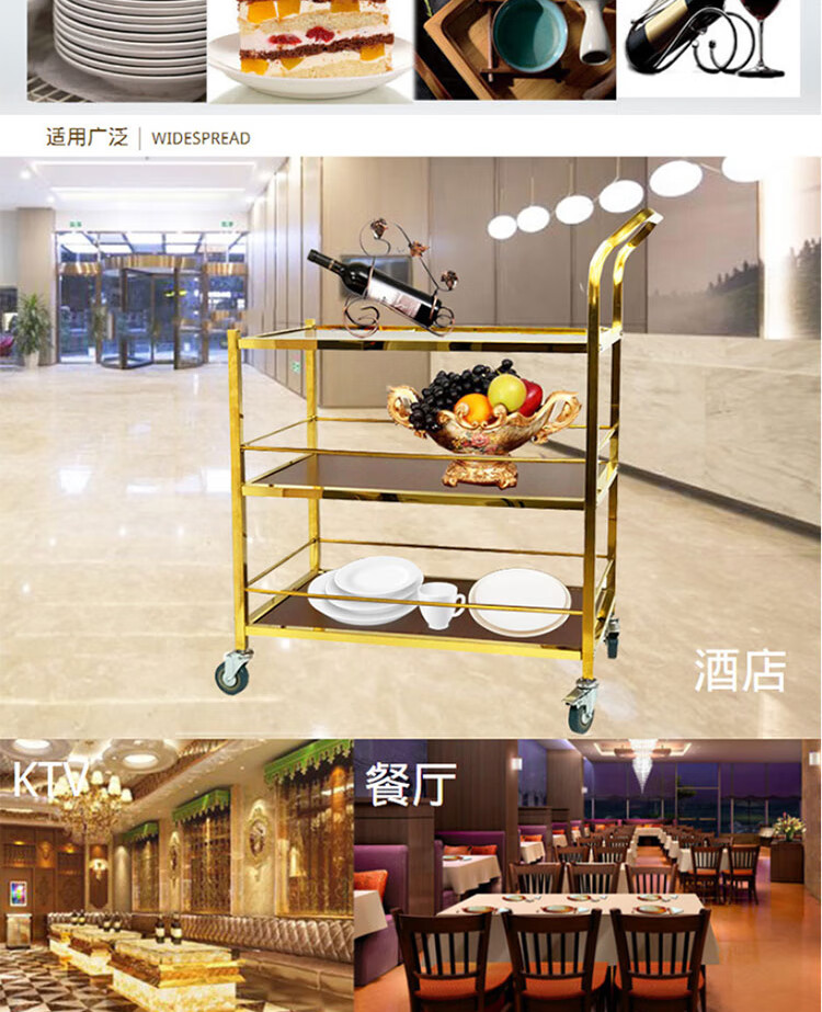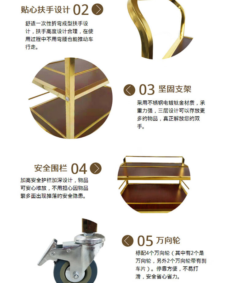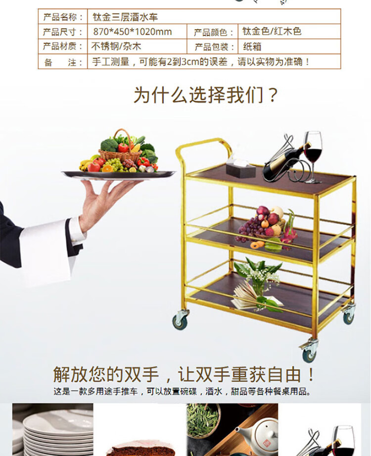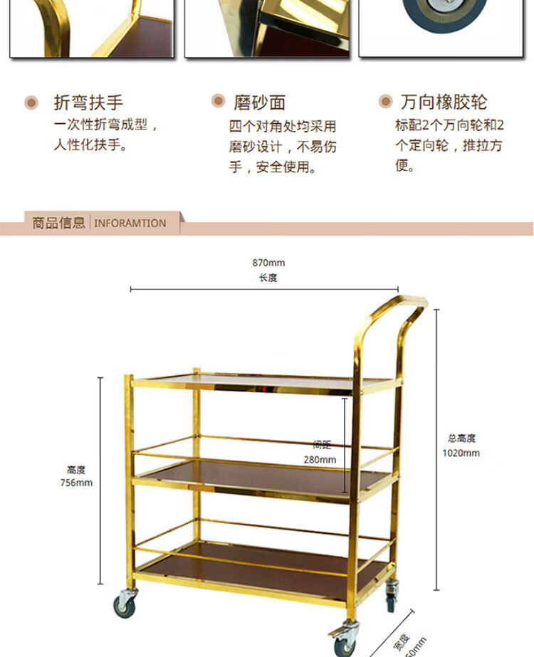 冰禹 三层小推车 BY-7073 不锈钢 金色可拆装 1个