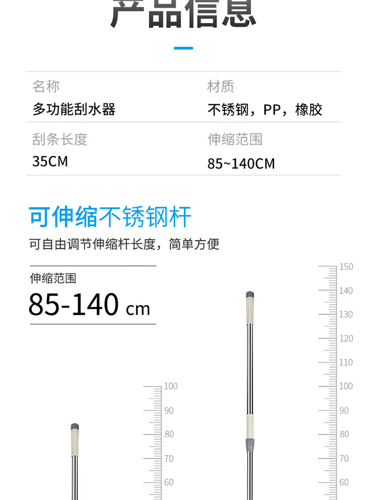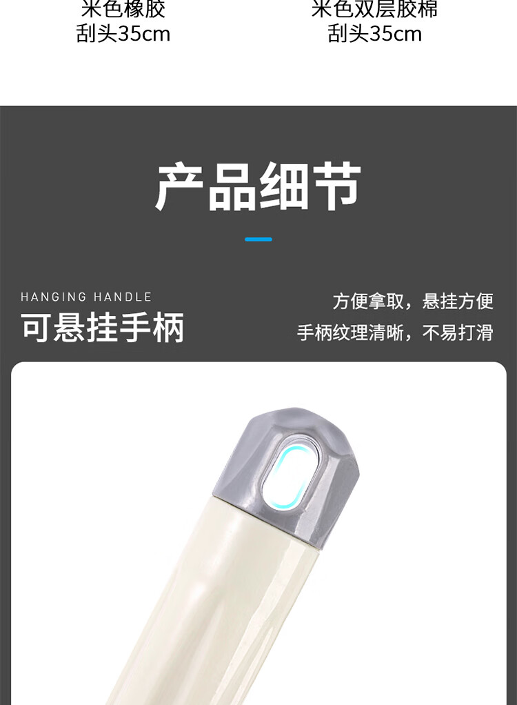 冰禹 地刮地面刮水器 BYzx-86 米色橡胶刮头35cm(带杆) 1把