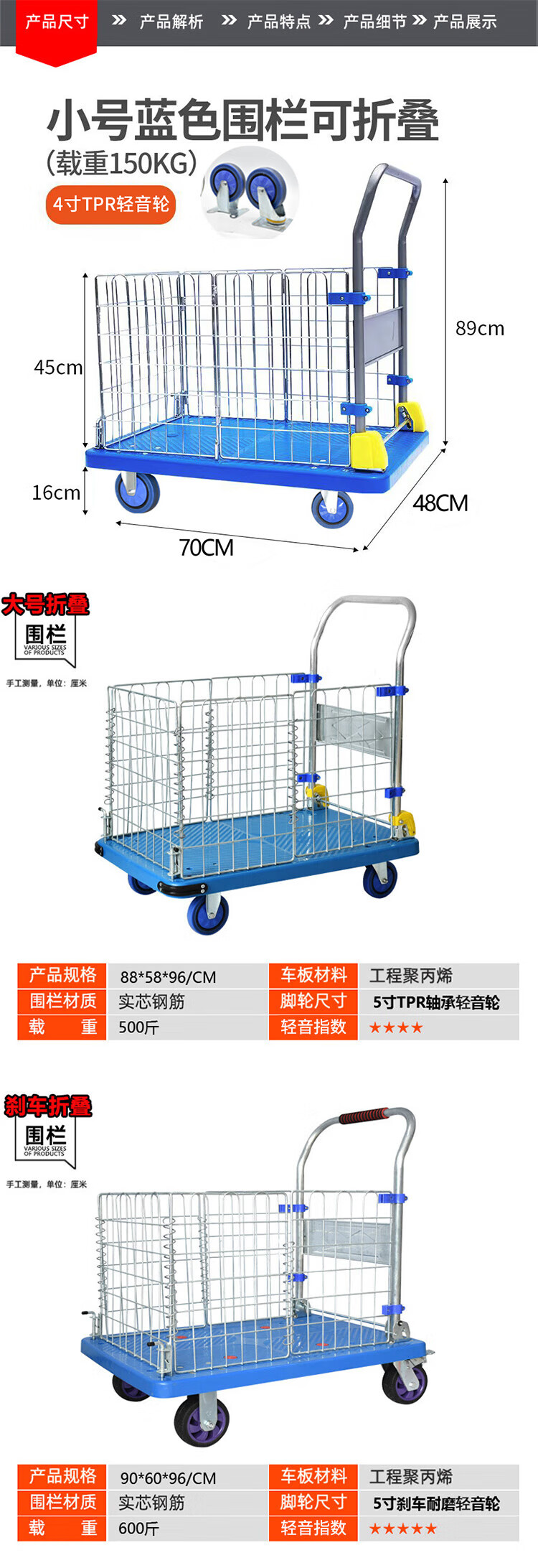 冰禹 网架平板车 bf-52 大号折叠围栏款 88*58*96cm 1辆