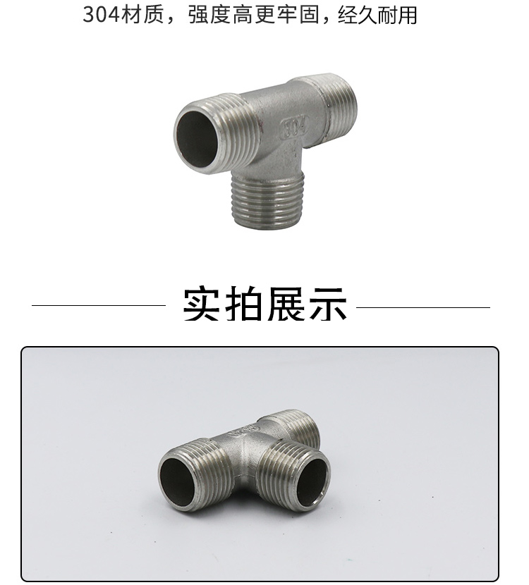 冰禹 外丝三通 AB03371 304不锈钢 螺纹 DN20 3/4 1个