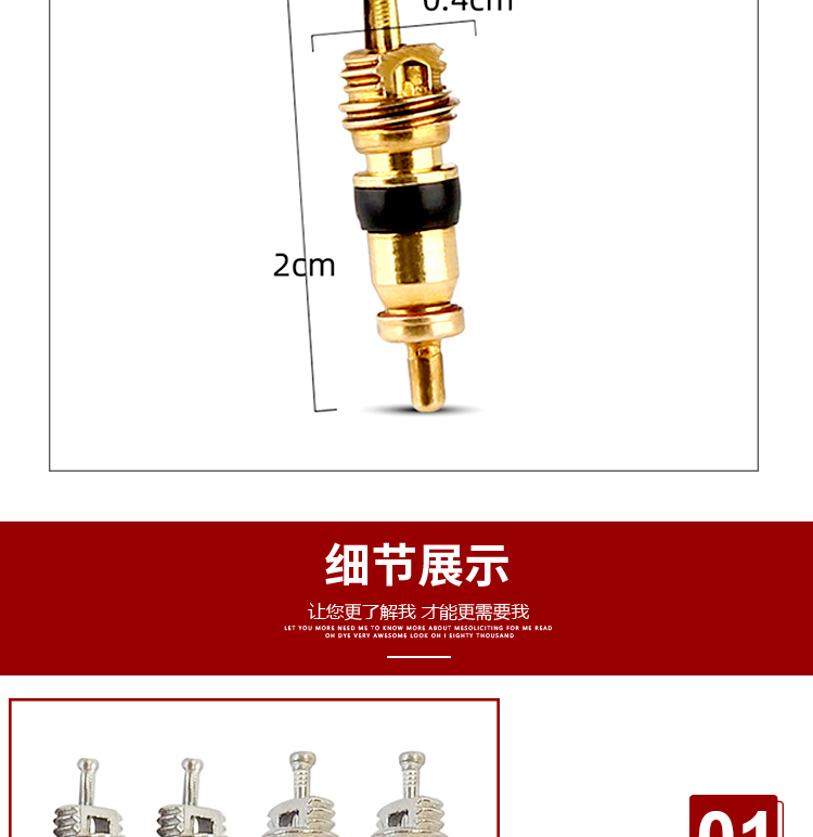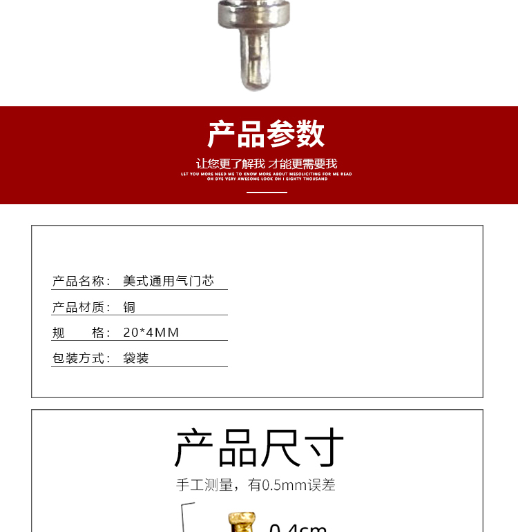 海斯迪克 汽车自行车轮胎汽门芯 HKqy-107 20*4mm 100个 1包