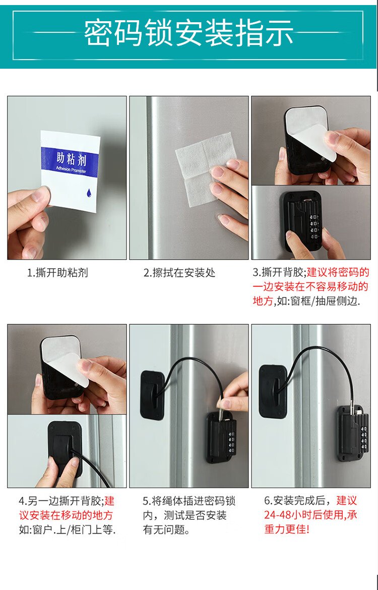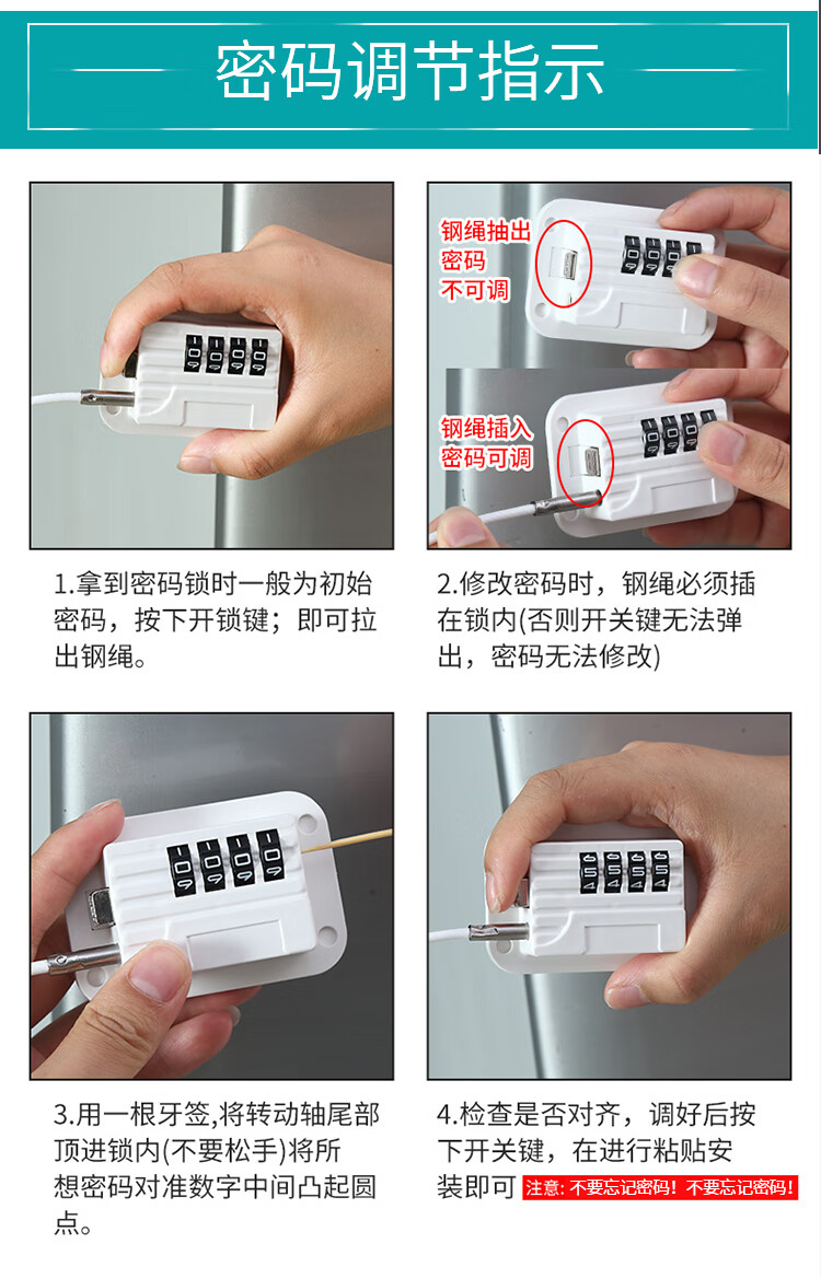 海斯迪克 免打孔安全锁 HKL-1040 四轮密码锁(黑) 1个