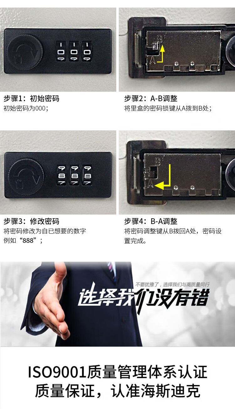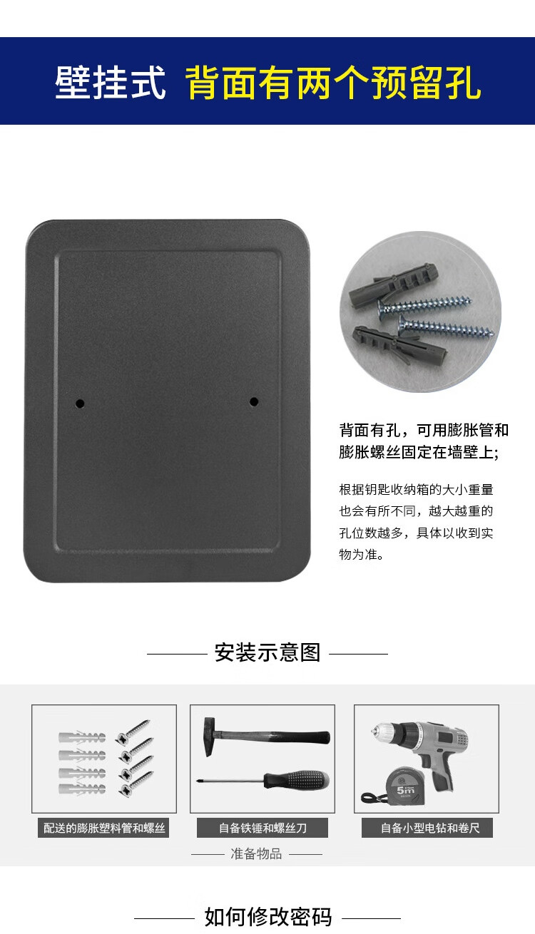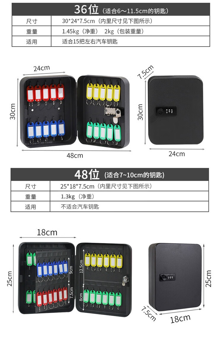 海斯迪克 密码钥匙保管箱 HKQL-15 黑色 30*24*7.5cm 36位 1个
