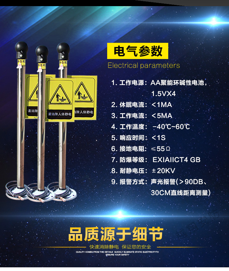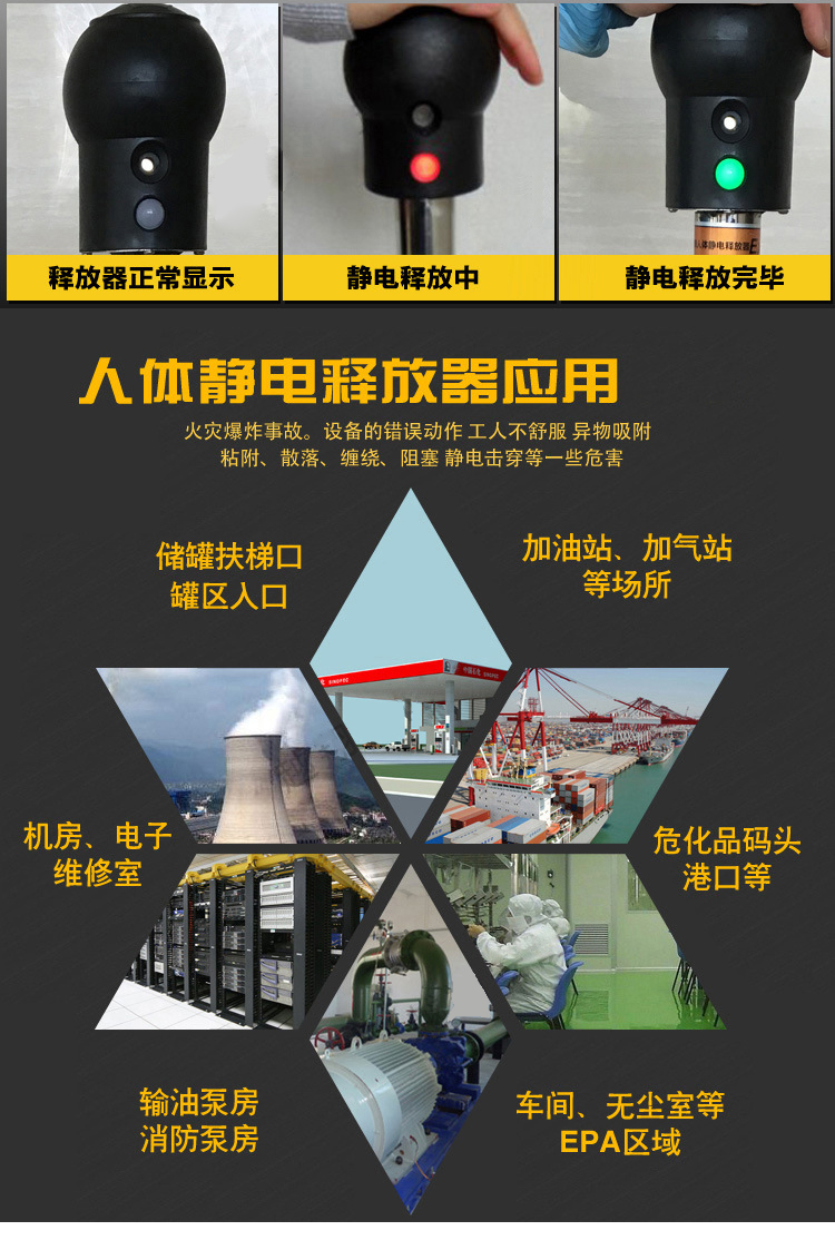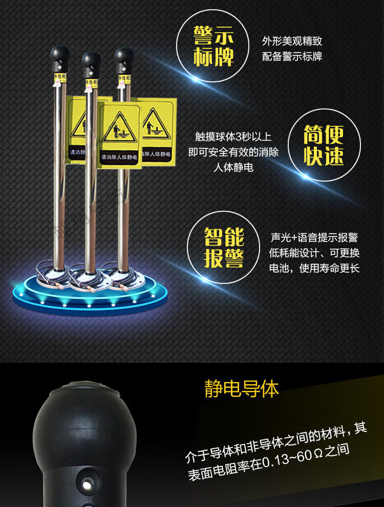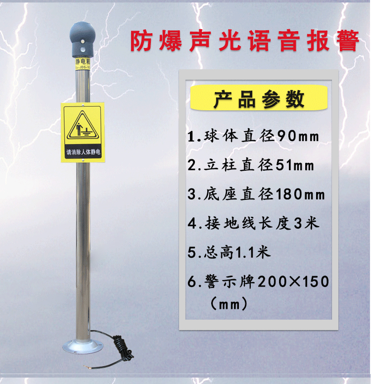 海斯迪克 静电释放球 HKL-55 智能声光报警款 1个