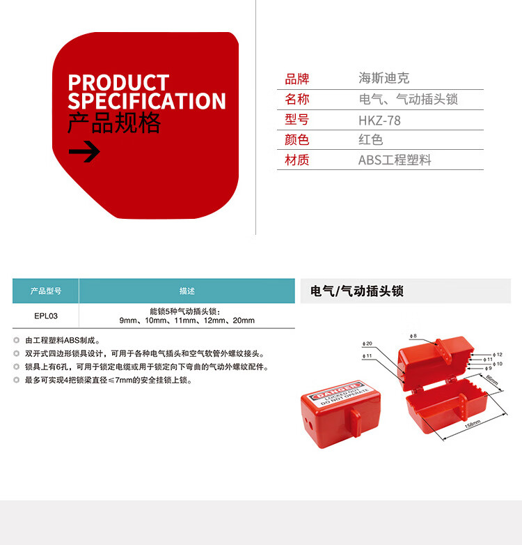 海斯迪克 通用型工业电器插头安全锁 HKZ-78 03款 1个
