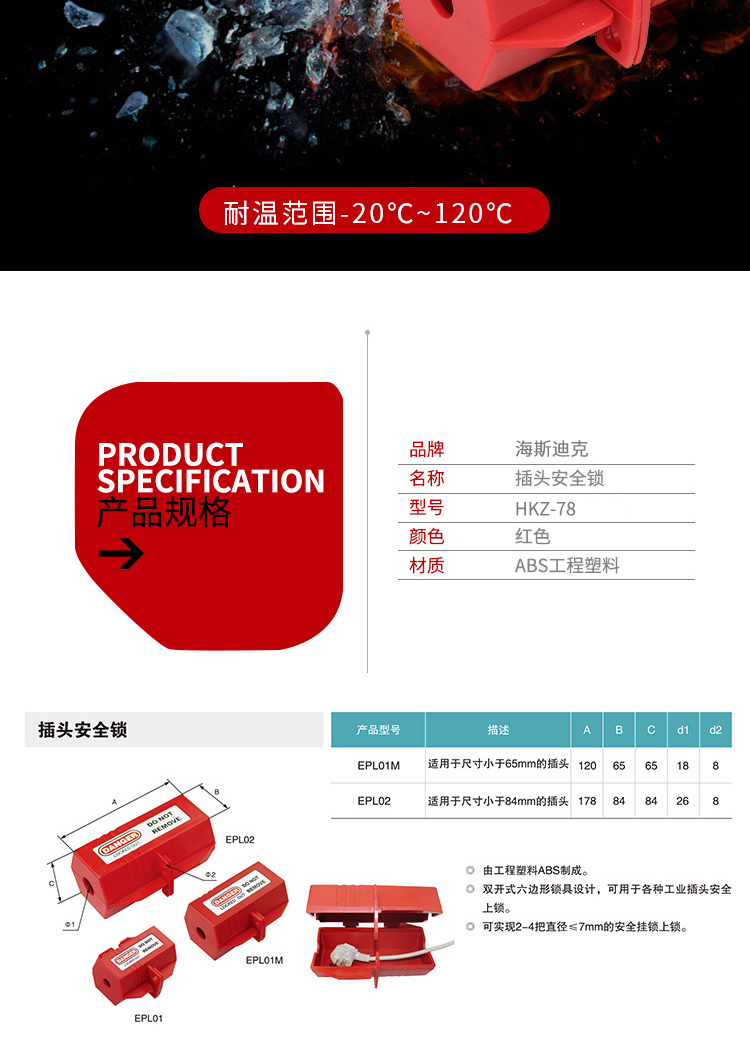 海斯迪克 电器插头锁盒 HKZ-78 01M款:65mm高×65mm厚×120mm宽 1个