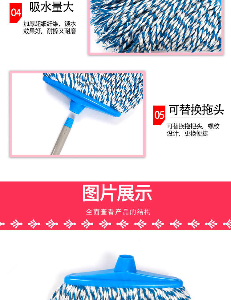 冰禹 吸水墩布拖把 BYyc-152 铁 单独铁杆 1把