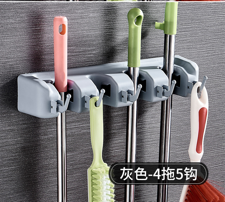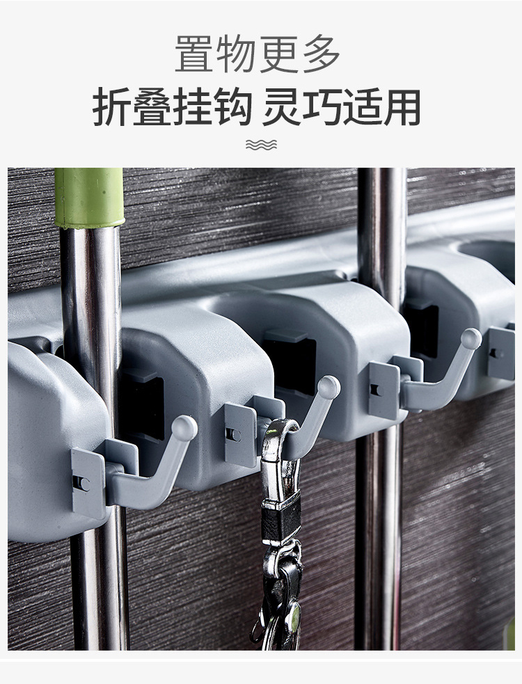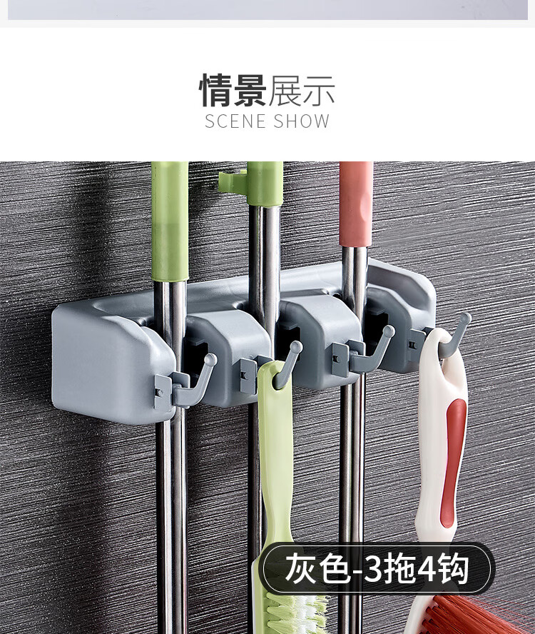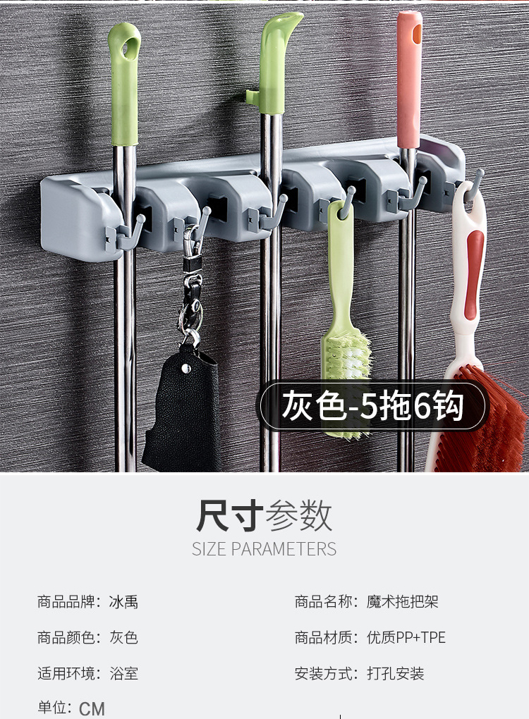冰禹 魔术塑料拖把架 BY-5084 PP+TPE 3挂4勾灰色 1个