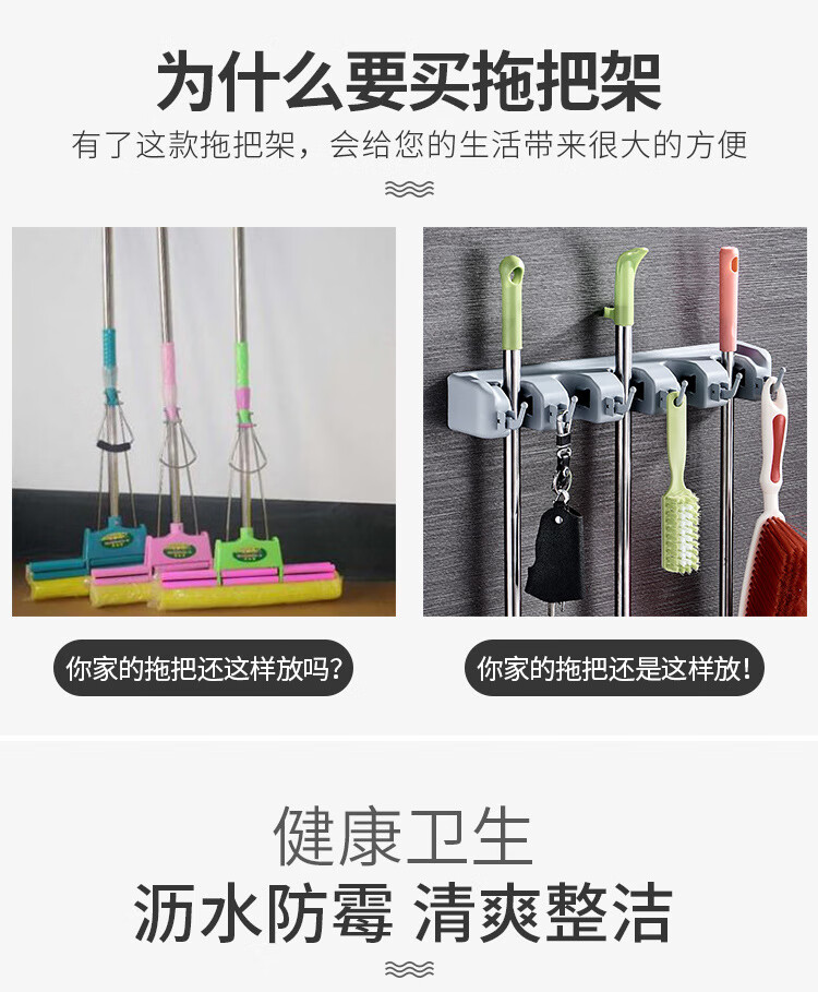 冰禹 魔术塑料拖把架 BY-5084 PP+TPE 4挂5勾灰色 1个