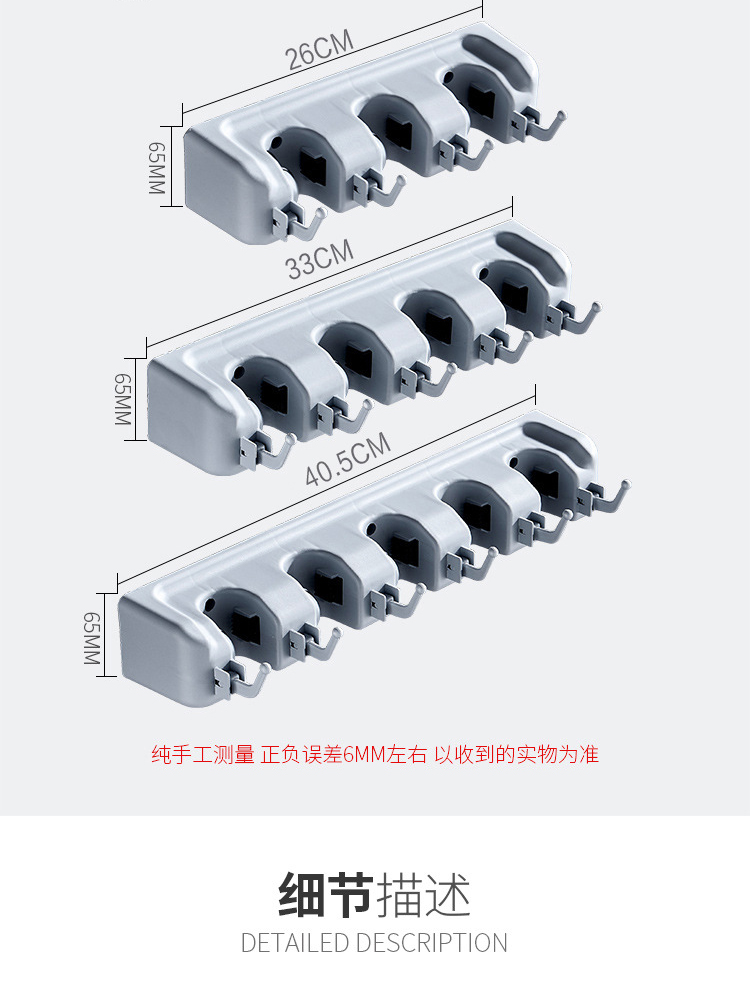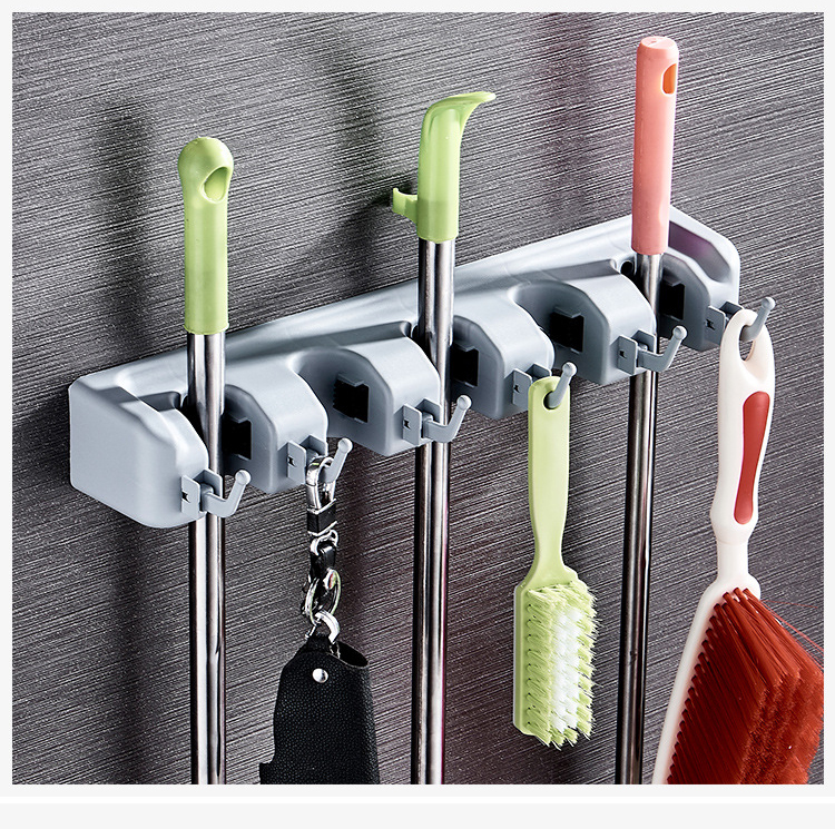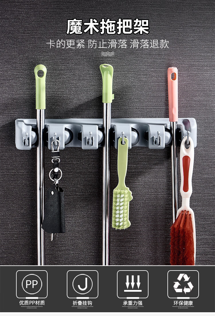 冰禹 魔术塑料拖把架 BY-5084 PP+TPE 5挂6勾灰色 1个