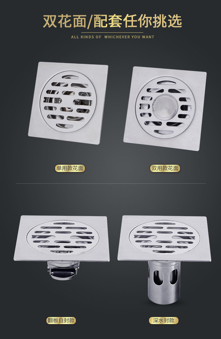 冰禹 深水封加厚地漏 BY-1252 不锈钢 10*10cm 双用款深水封 1个