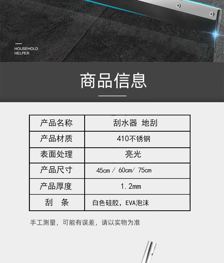 冰禹 刮水器 BYQ-583 不锈钢+硅胶 硅胶地刮 45cm款 带杆 1把