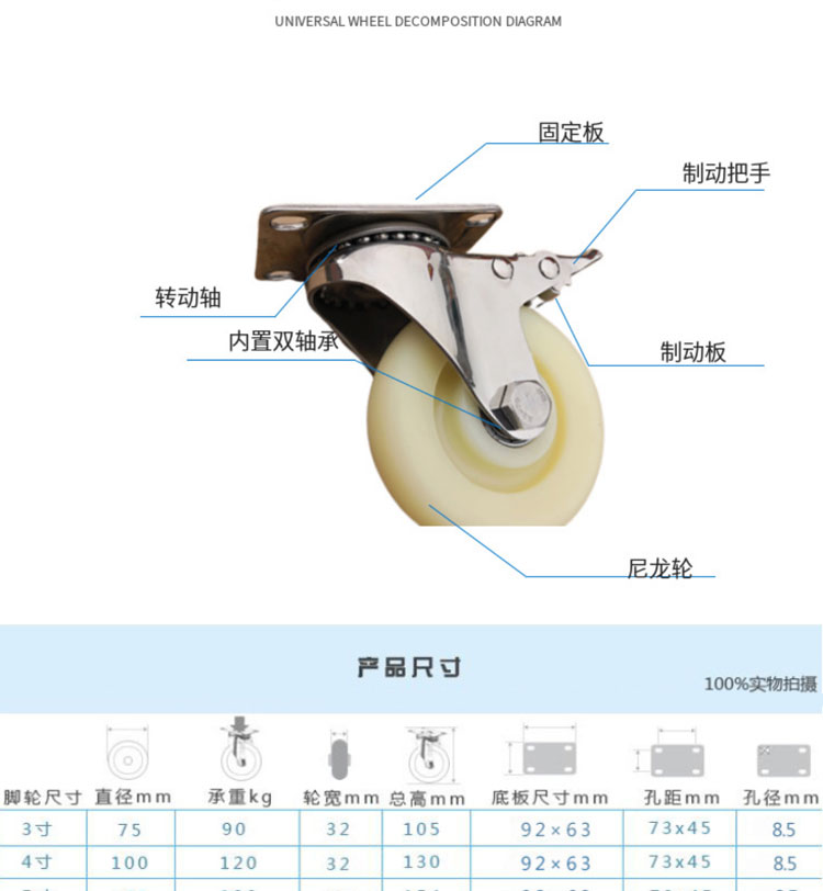 冰禹 脚轮 bf-73 不锈钢 万向轮 中型 4寸 1个
