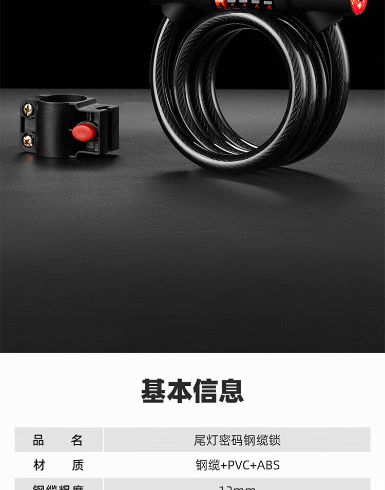 海斯迪克 自行车锁 HKsq-337 尾灯夜光密码锁 1个