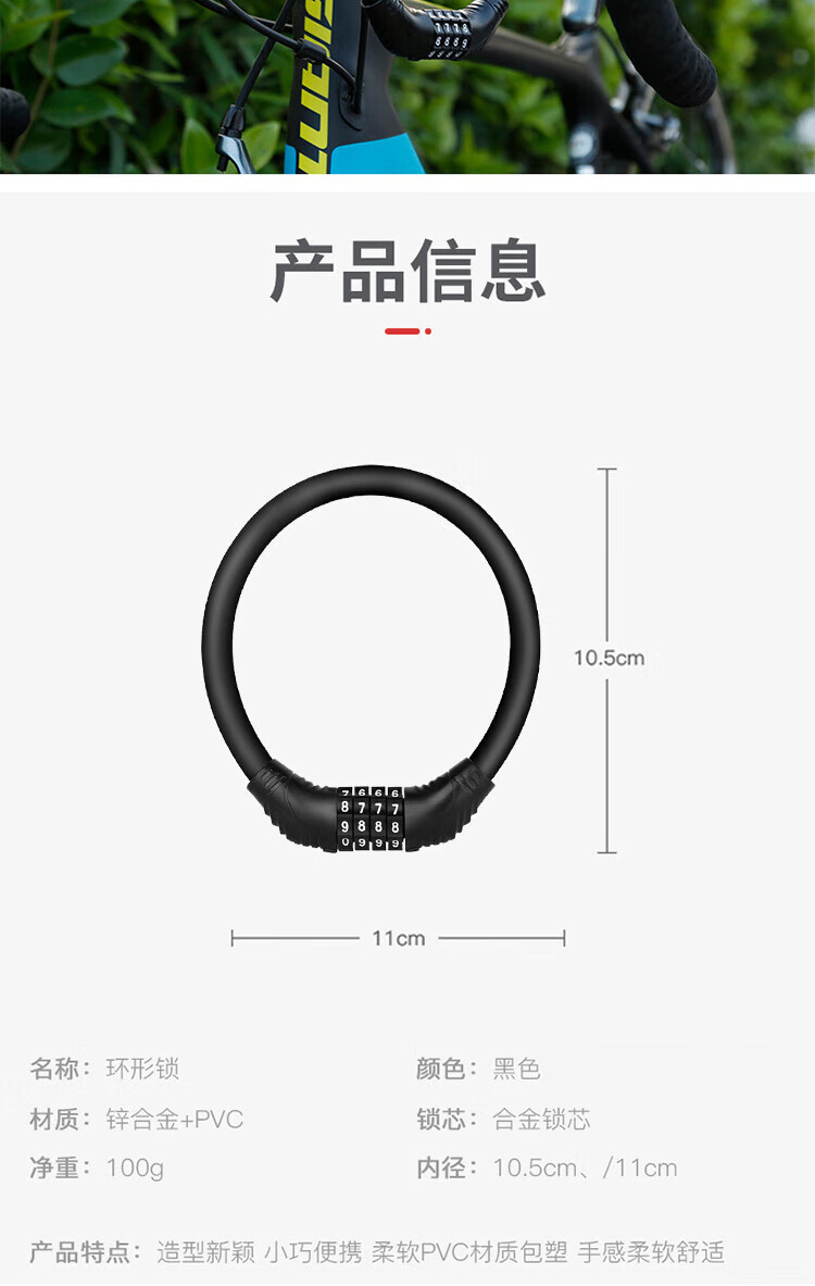 海斯迪克 山地自行车锁 HKsq-333 黑色 2个 1件