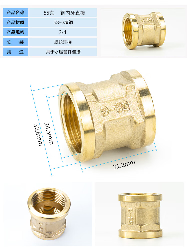 海斯迪克 双内丝铜内牙直接头 HKCL-787 1/2 30g 5个 1包