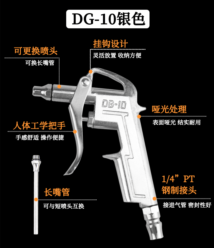 海斯迪克 高压吹尘枪 HZL-277 DG-10银色 145*85*75mm 1个