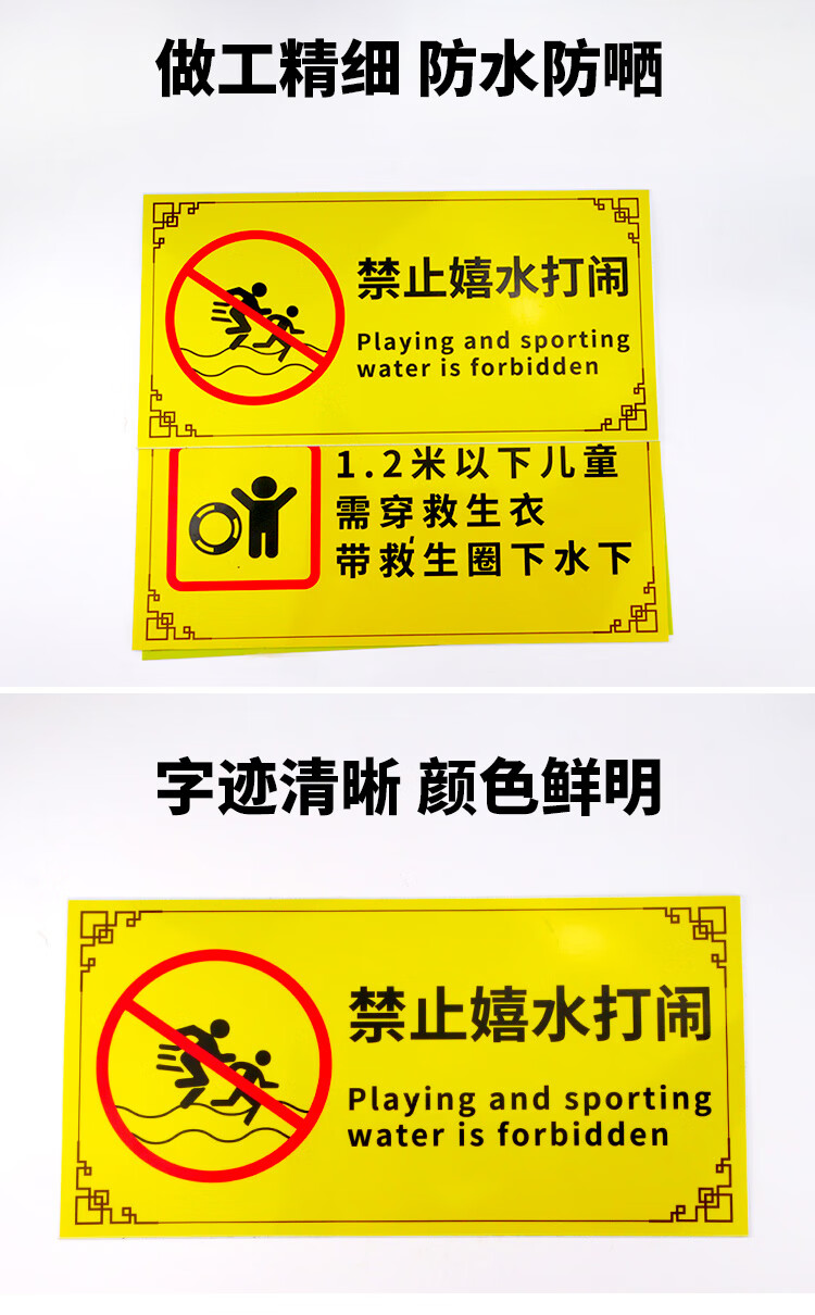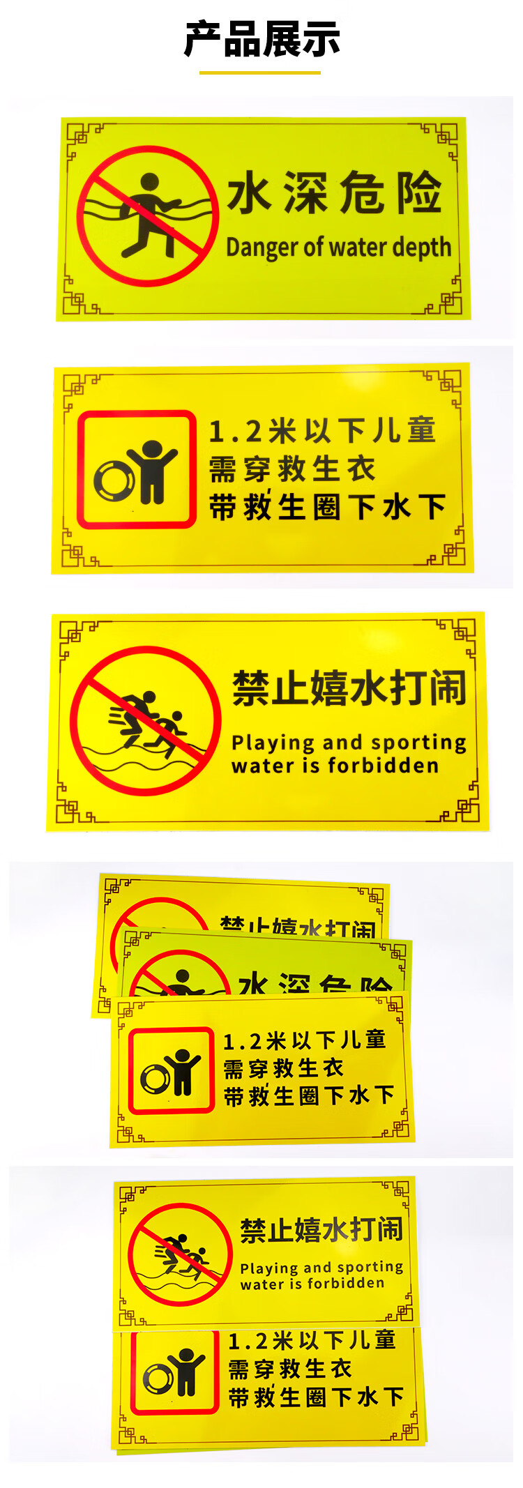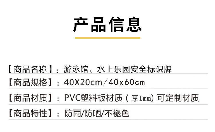 冰禹 泳池温馨提示牌 BYlj-07 PVC 20*40cm 消毒水池小心滑倒 1个