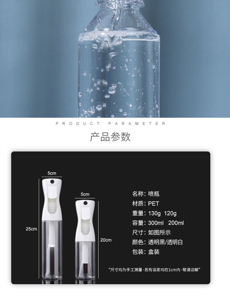冰禹 喷雾瓶 BYyc-121 PET 透明黑 手动式 300ml 1个