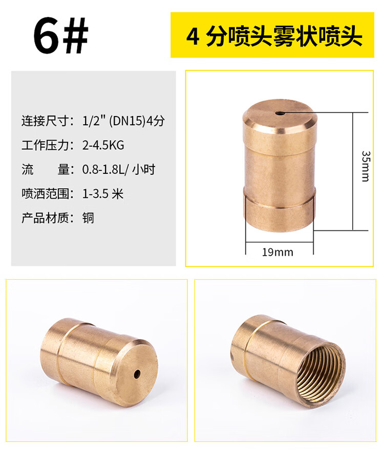 冰禹 除尘雾化喷淋头 BYA-101 铜 螺纹 分雾炮机喷头#3 4分 2个 1件