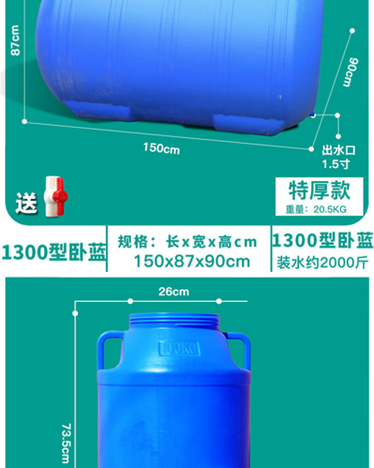 冰禹 储水桶 BY-7087 塑料 蓝色 特厚800斤抗老化 1个
