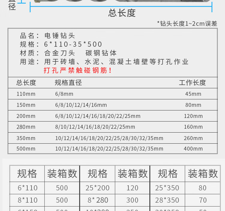海斯迪克 加长电锤钻头 HKsq-427 合金刀头+碳钢钻体 方柄 8*150mm 10个 1件